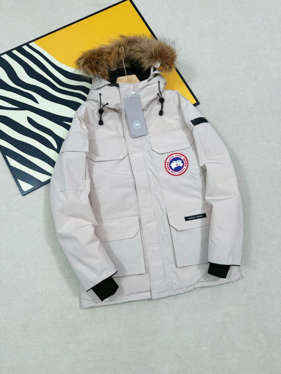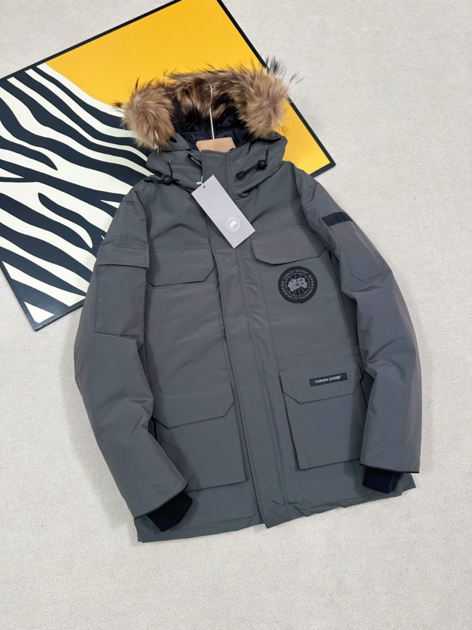 ✔面料采用Feather-Light 10D防水涂层面料,由84.5的聚酯纤维和15.5的棉制成,表面经过杜邦公司生产的Teflon特殊防护涂层处理后可防风防溅水,并且使得该服装具有了防污染和持久保新的功能!✔一体式无缝袖口,13cm官方长度,封口处全部打枣处理,内胆全部拷边,拷边就是把内胆全部针车一遍,一方面是为了不跑绒,另外方面可以保持衣服的硬挺感!✔原厂Yoshida Kogyo Kabushikigaisha拉链,顶级锌合金电镀最高规格拉链,采用日本精确工艺 ,原料和管理方法,每条拉链可以经受住10万次+的开合 !✔可拆卸毛领 主标双线9针锁式绞合刺绣,电子数字自动绣花,枫叶棱角分明👍细节实拍📷
