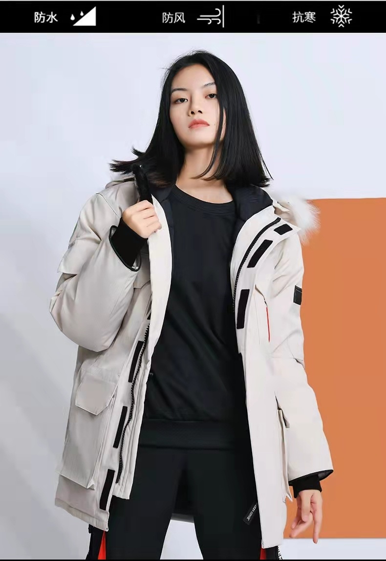 ✔面料采用Feather-Light 10D防水涂层面料,由84.5的聚酯纤维和15.5的棉制成,表面经过杜邦公司生产的Teflon特殊防护涂层处理后可防风防溅水,并且使得该服装具有了防污染和持久保新的功能!✔一体式无缝袖口,13cm官方长度,封口处全部打枣处理,内胆全部拷边,拷边就是把内胆全部针车一遍,一方面是为了不跑绒,另外方面可以保持衣服的硬挺感!✔原厂Yoshida Kogyo Kabushikigaisha拉链,顶级锌合金电镀最高规格拉链,采用日本精确工艺 ,原料和管理方法,每条拉链可以经受住10万次+的开合 !✔可拆卸毛领 主标双线9针锁式绞合刺绣,电子数字自动绣花,枫叶棱角分明👍尺码:S-XXL颜色:黑色/米白色/石墨灰红标/藏青/宝蓝/粉色/红色/石墨灰黑标