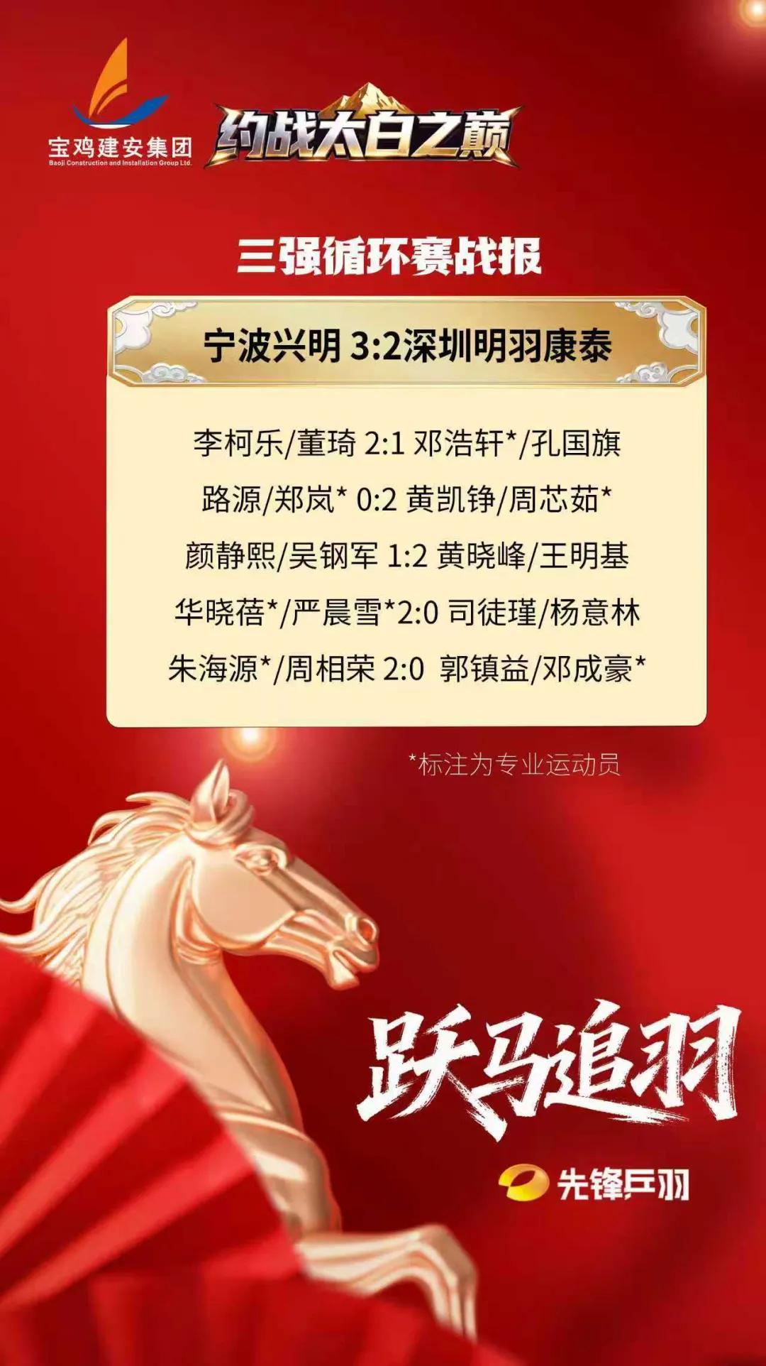 最终宁波兴明以大比分3:2赢下整场比赛,获得本届赛事亚军。深圳明羽康泰获得季军。