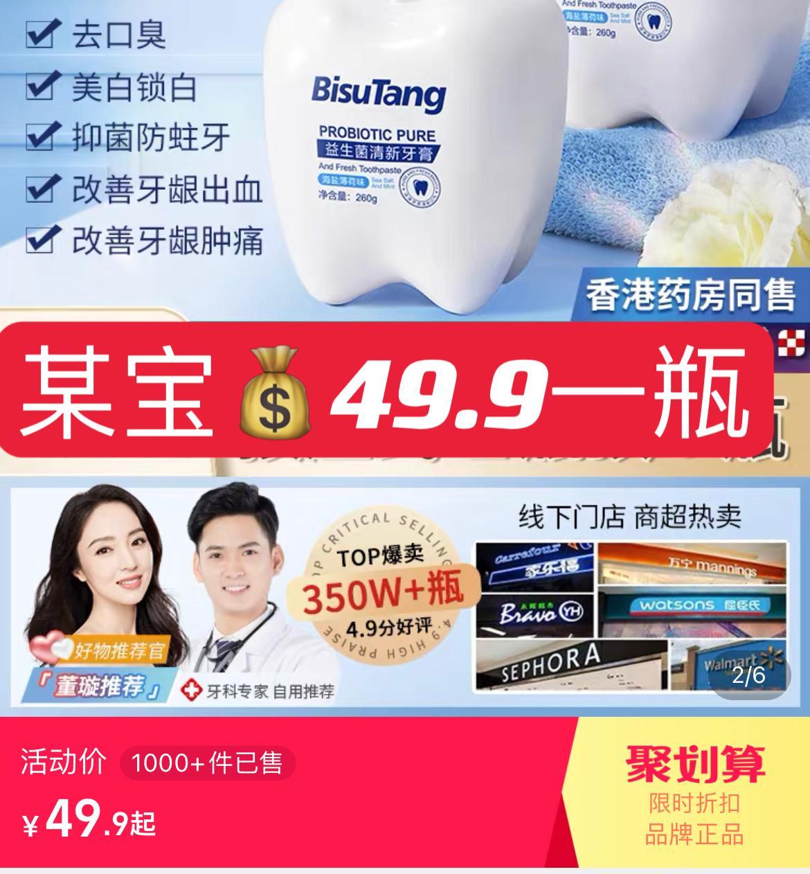 碧素堂是国内专业的个护大品牌,这款益生菌牙膏汇聚了十几位口腔专家、医科教授、博士的技术和心血‼️专门为牙菌斑、牙结石、口臭人群研制的有多专业❗️拿到手用一次你就会感受到!什么叫牙膏界的云泥之别!!!!某宝一瓶💰49.9!!!咱们两瓶💰29.9🤣不好意思这价格做梦都得笑出声吧!十几块钱就能买天猫洗护类目销量top1的大腕!
