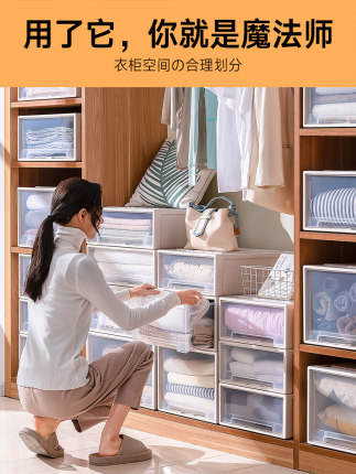 收纳箱抽屉式收纳盒衣柜神器衣服整理箱衣物储物箱家用塑料收纳柜