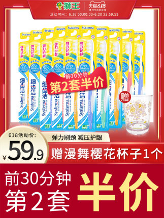 LION/狮王牙刷细齿洁弹力护龈牙刷10支装 软毛细毛成人牙刷家庭装 【包邮】