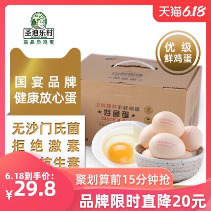 圣迪乐村山春牧场好食蛋优级无腥味新鲜鸡蛋谷物喂养无菌蛋40枚 【包邮】