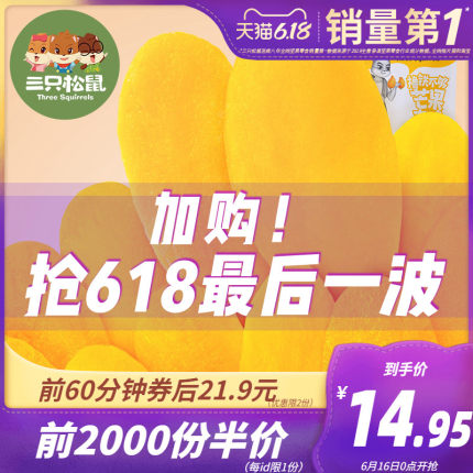 【三只松鼠_芒果干116gx3】零食小吃蜜饯水果干果脯网红休闲食品 【包邮】