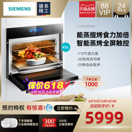 SIEMENS/西门子CS289ABS0W家用嵌入式蒸烤一体机二合一烤箱蒸箱 【包邮】