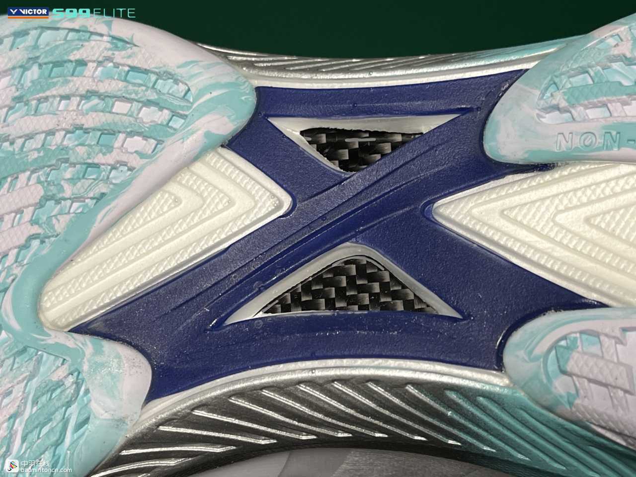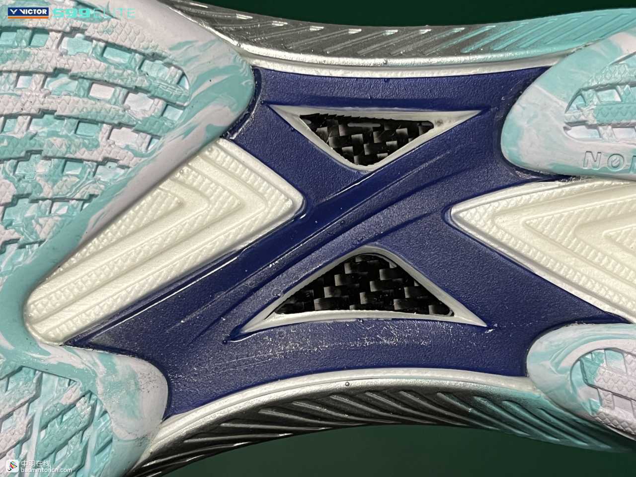 接下来要压轴介绍的就是S99 ELITE的中底,融入了大量威克多顶级科技材料的中底可谓是“阵容豪华”。S99 ELITE的中底由四部分组成,包括中桥处的加厚碳板“CARBON POWER”、后掌能量垫“ENERGYMAX V”、全掌氮气超临界发泡材料“NITROLITE”以及底部中桥的“ESS”硬质TPU材料。