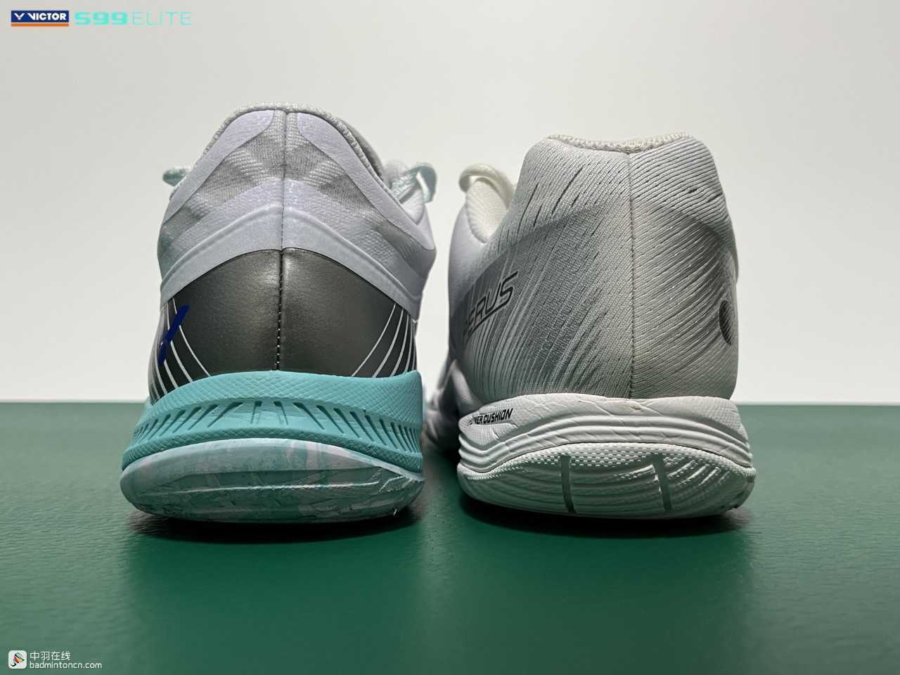 不过S99 ELITE的后跟设计得比较高,因而对脚踝的包覆面积还是比较大的,与超轻Z放在一起对比就可以很直观地看到区别。