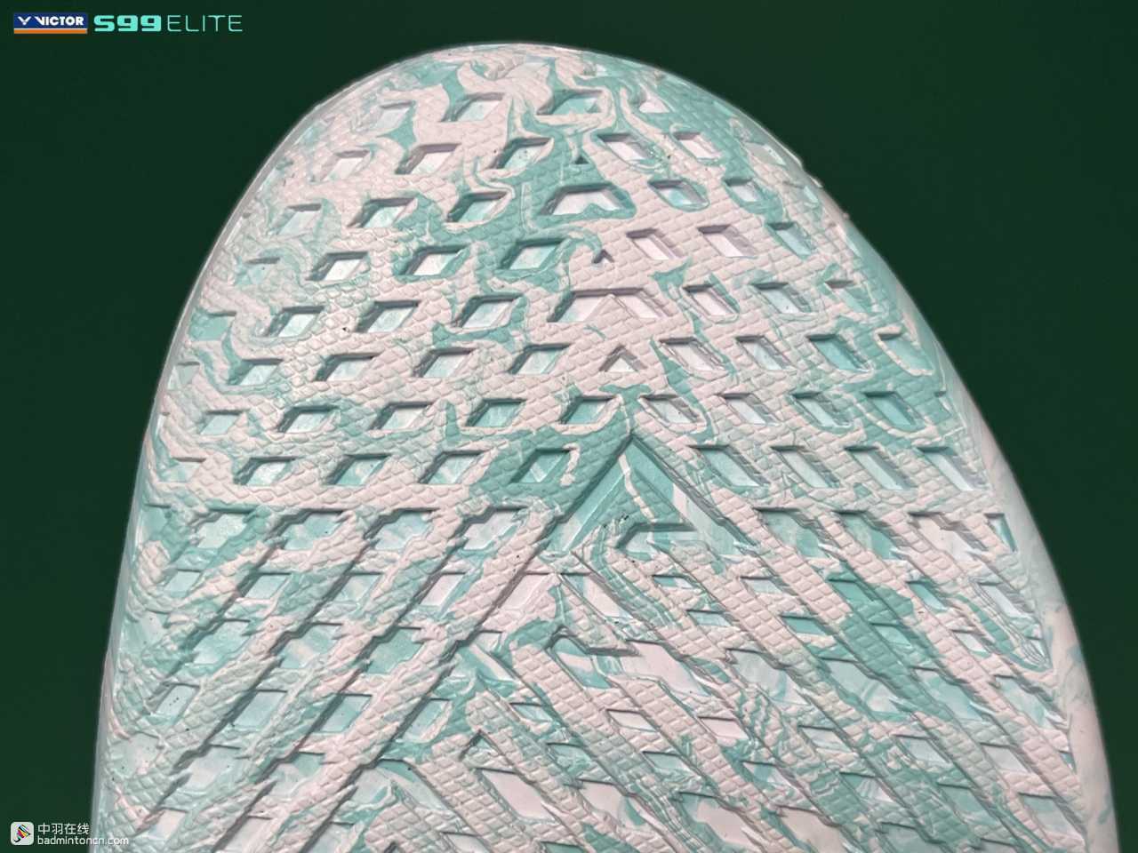 至于大底,S99 ELITE采用的是实色橡胶,纵横交错的防滑纹路,前掌内外两侧均有一定的向上包覆,提升防滑与耐磨性能。