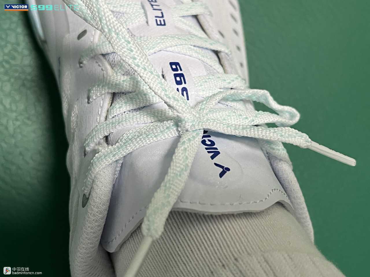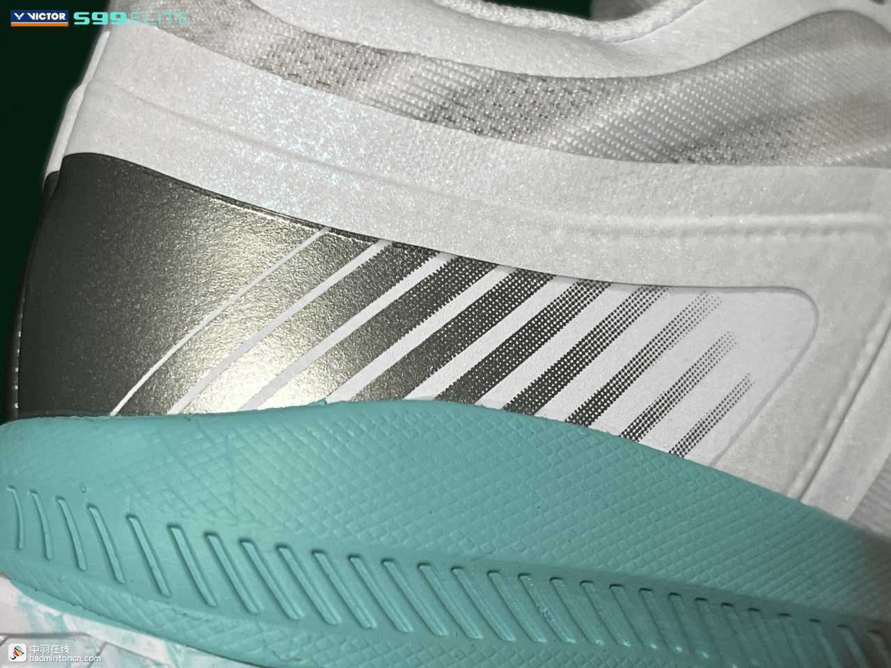 笔者入手的这双S99 ELITE为亮白配色,鞋身采用了非常纯粹而明亮的白色,辅以银色的修饰图案,鞋带和鞋底上淡淡的湖蓝色纹理上下呼应,起到了锦上添花的效果。