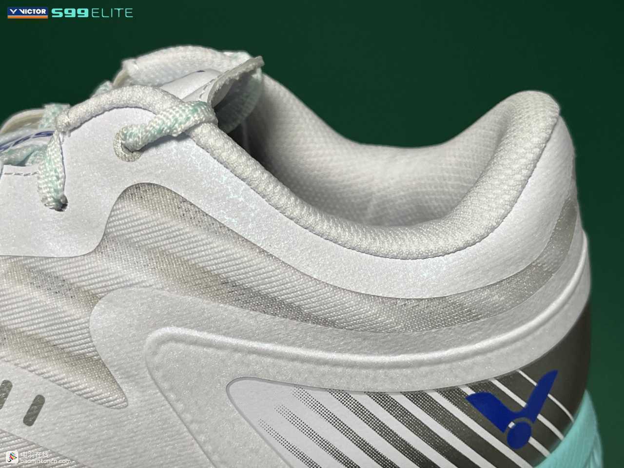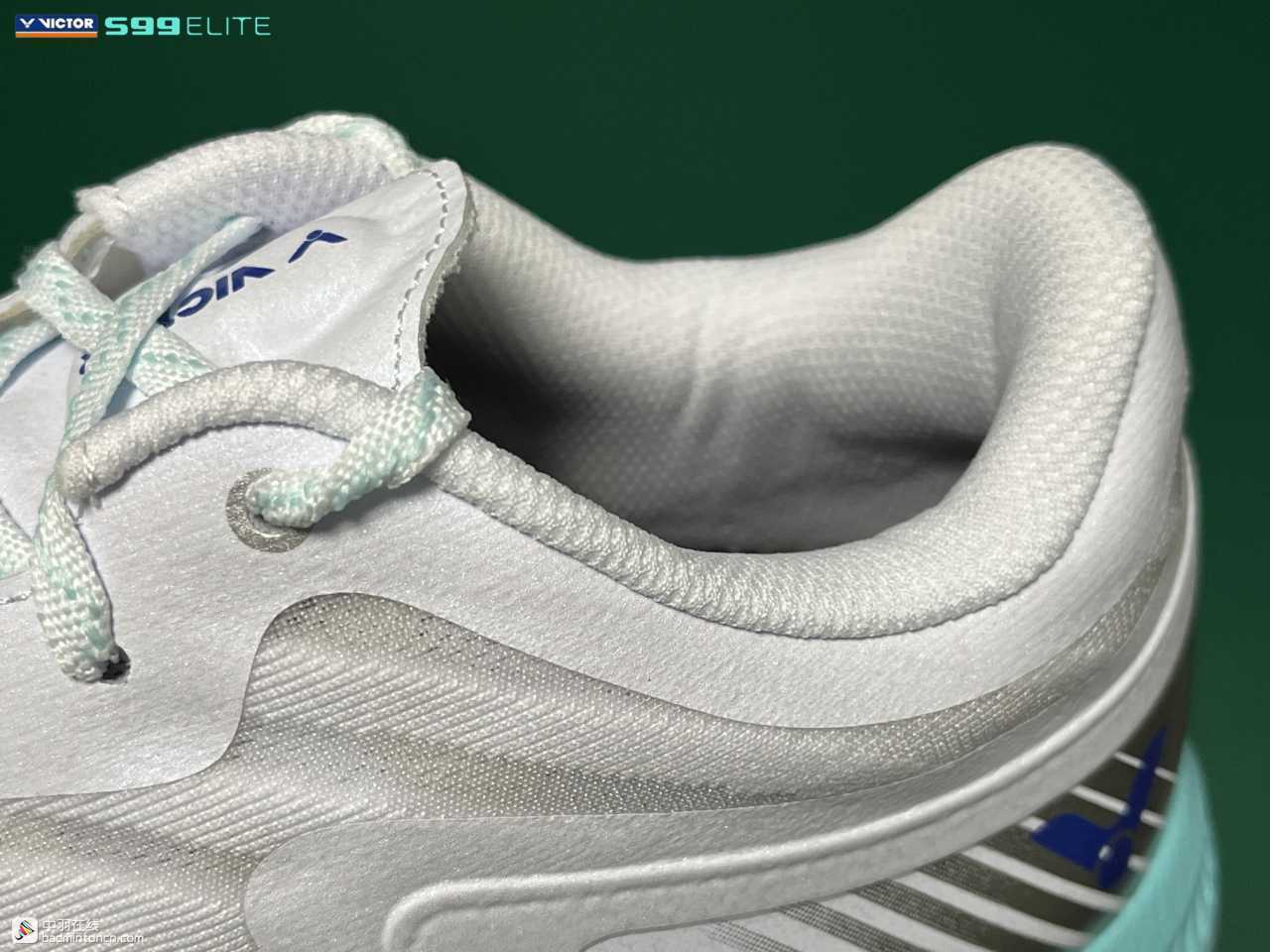 后跟处是整只鞋包裹最为厚实的部分,不过相较于普通的球鞋,S99 ELITE在后跟处的海绵用料明显较薄,这也是为了达到轻量化的设计目标。