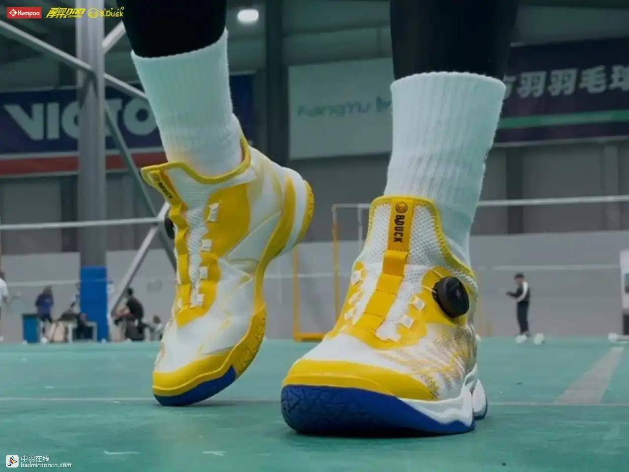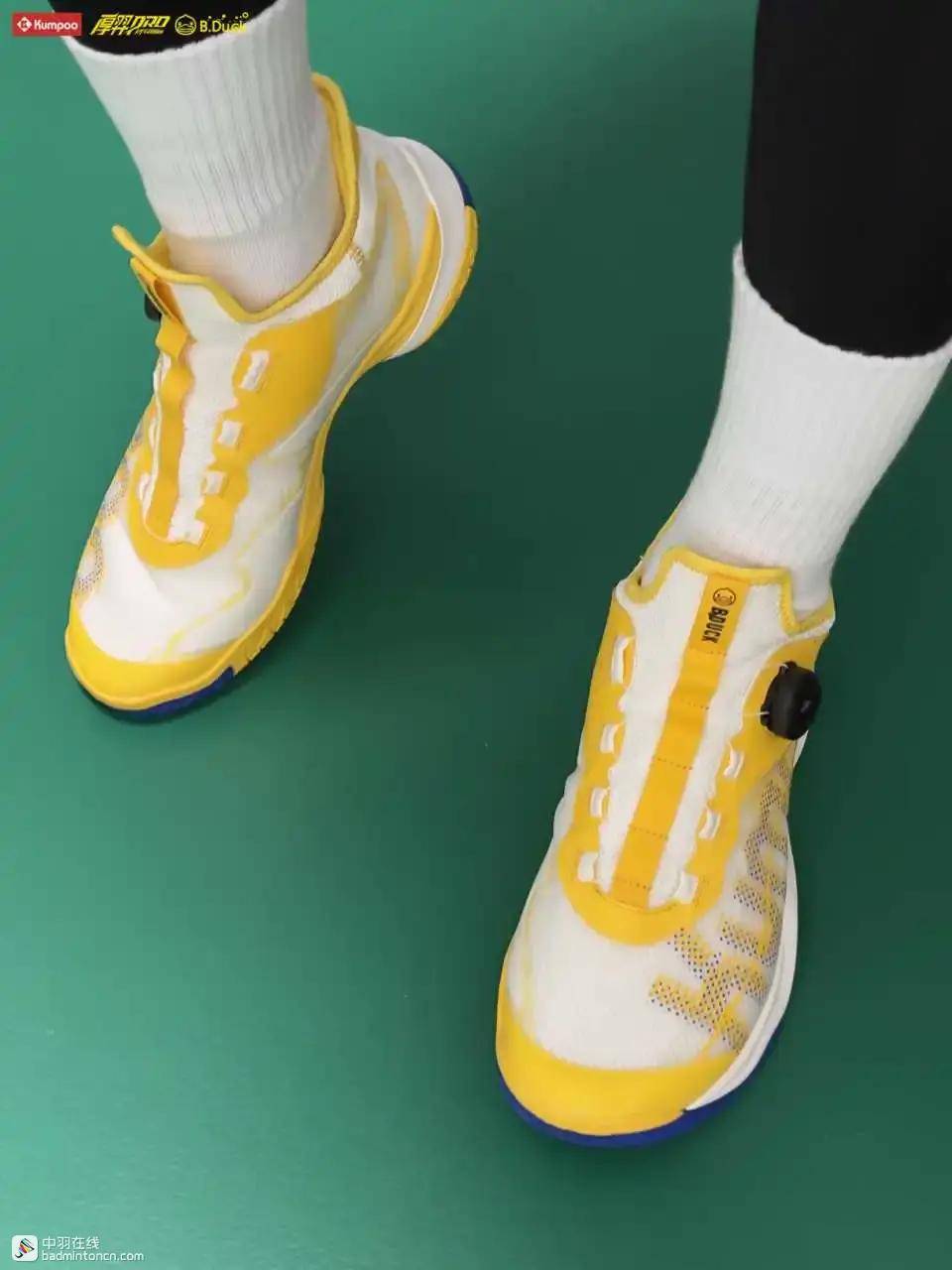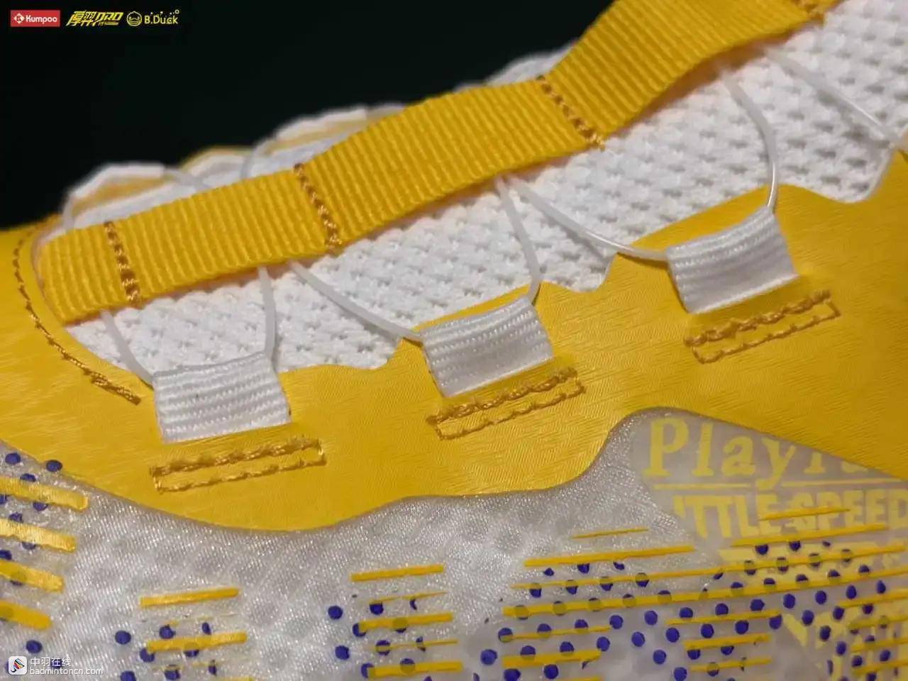 厚羿PRO 小黄鸭采用飞扣系统(Fitgo),搭配动态绑缚式设计的鞋带孔,让穿脱过程变得更为方便快捷。