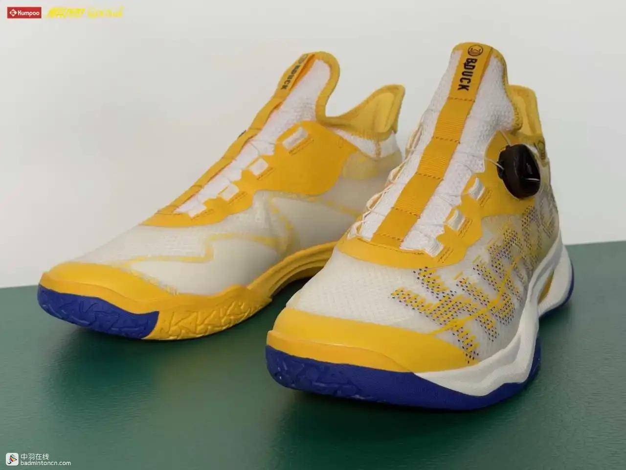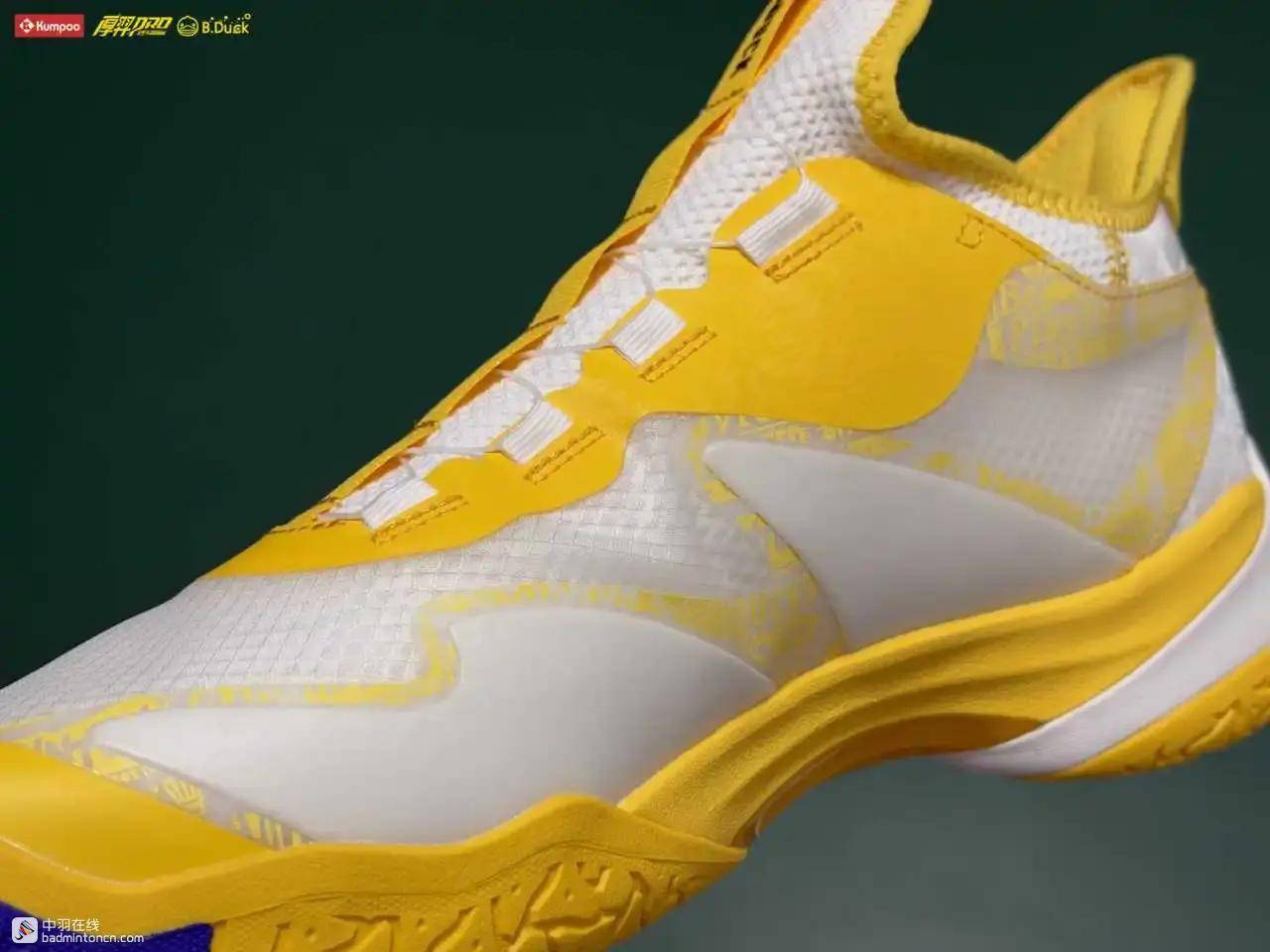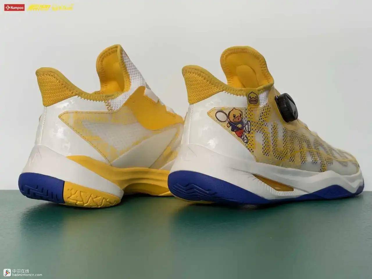 提起小黄鸭(B. DUCK),相信各行各界都有所耳闻,这一令中国人骄傲的IP形象自二十年前正式诞生以来,可谓是广受欢迎和喜爱,它由中国香港设计师Eddie创造,始于从小黄鸭漂流故事中汲取的灵感,承载着为孩子们带来乐趣的初衷,二十年来传播的不仅仅是可爱的IP角色形象,更是深入人心的正能量。从诞生到无人不晓,二十年的“冒险”之路上,小黄鸭衍生出多种不同的造型,与各界品牌展开联名合作,创造了许许多多令人印象深刻的产品。而2024年薰风和小黄鸭的联名合作,让这只家喻户晓的黄色小鸭子第一次走进羽毛球的领域。2024年9月初,薰风×小黄鸭联名全系列产品正式发售,包括羽毛球拍、羽毛球鞋、服装、拍包和多种羽毛球运动配件。今天本文的主角就是其中的这双厚羿PRO 小黄鸭(KH-G826S B. DUCK)。