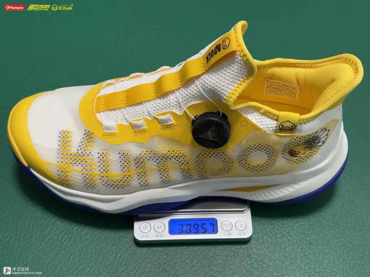 笔者手中的这双43码(内长275mm)厚羿PRO 小黄鸭经过实际称量,单只左脚重约389.57g,单只右脚重约388.90g,整体的重量偏重。