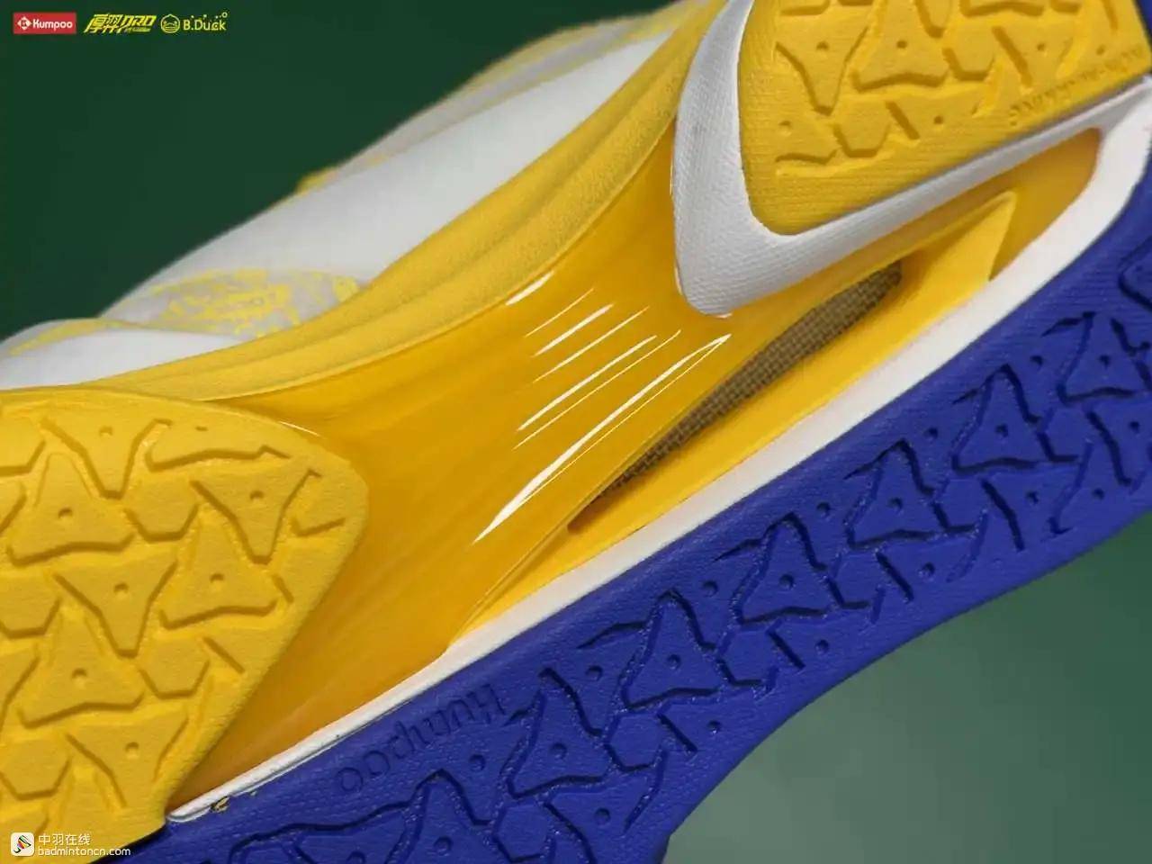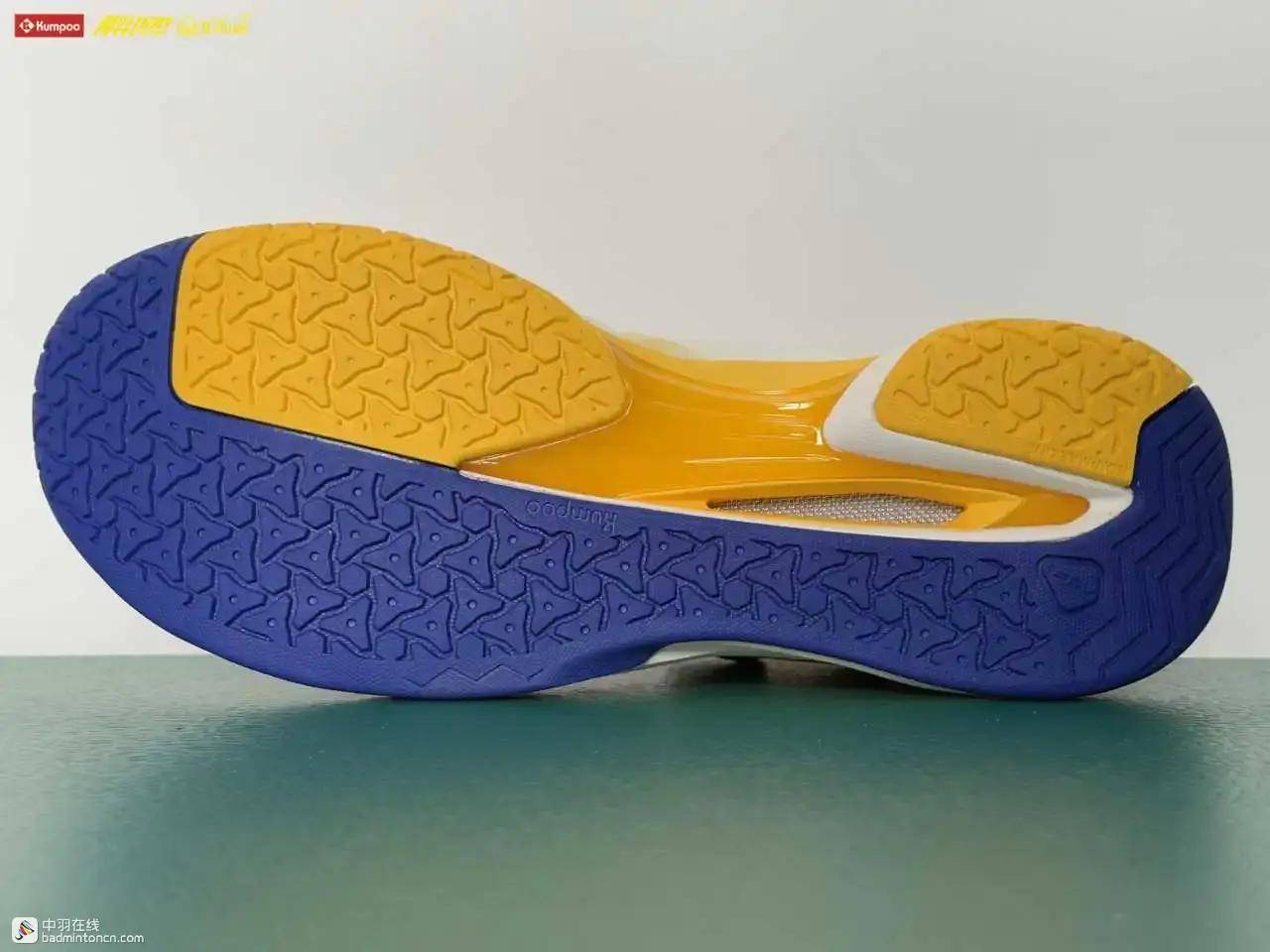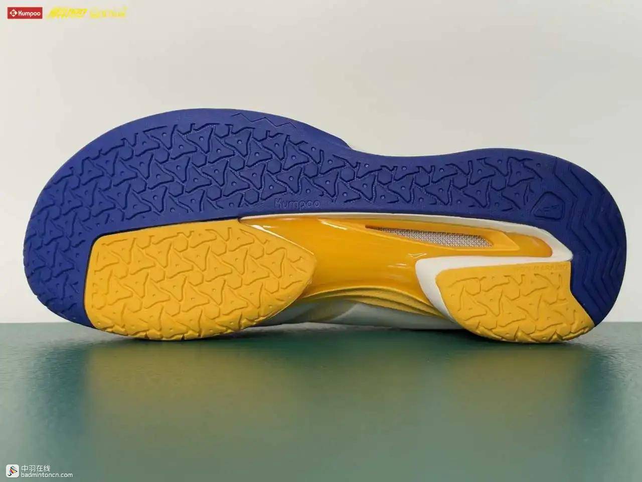在上网弓箭步、以及后场正反手被动步伐最后的跨步落地时,厚羿PRO 小黄鸭外侧的大底拓宽有效保证了抓地的扎实稳定,有效保证了实战中步伐的稳健,也为下一拍的回动奠定了坚实基础。