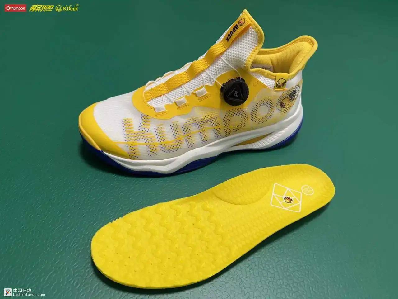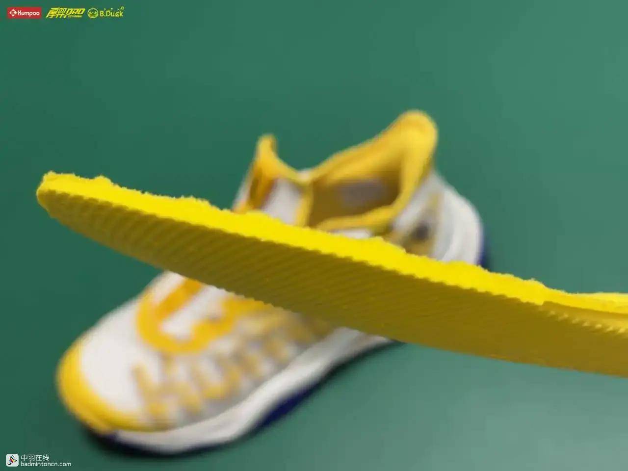 厚羿PRO 小黄鸭的原装鞋垫也延续黄色的设计,同样加入了薰风和小黄鸭LOGO的图案。
