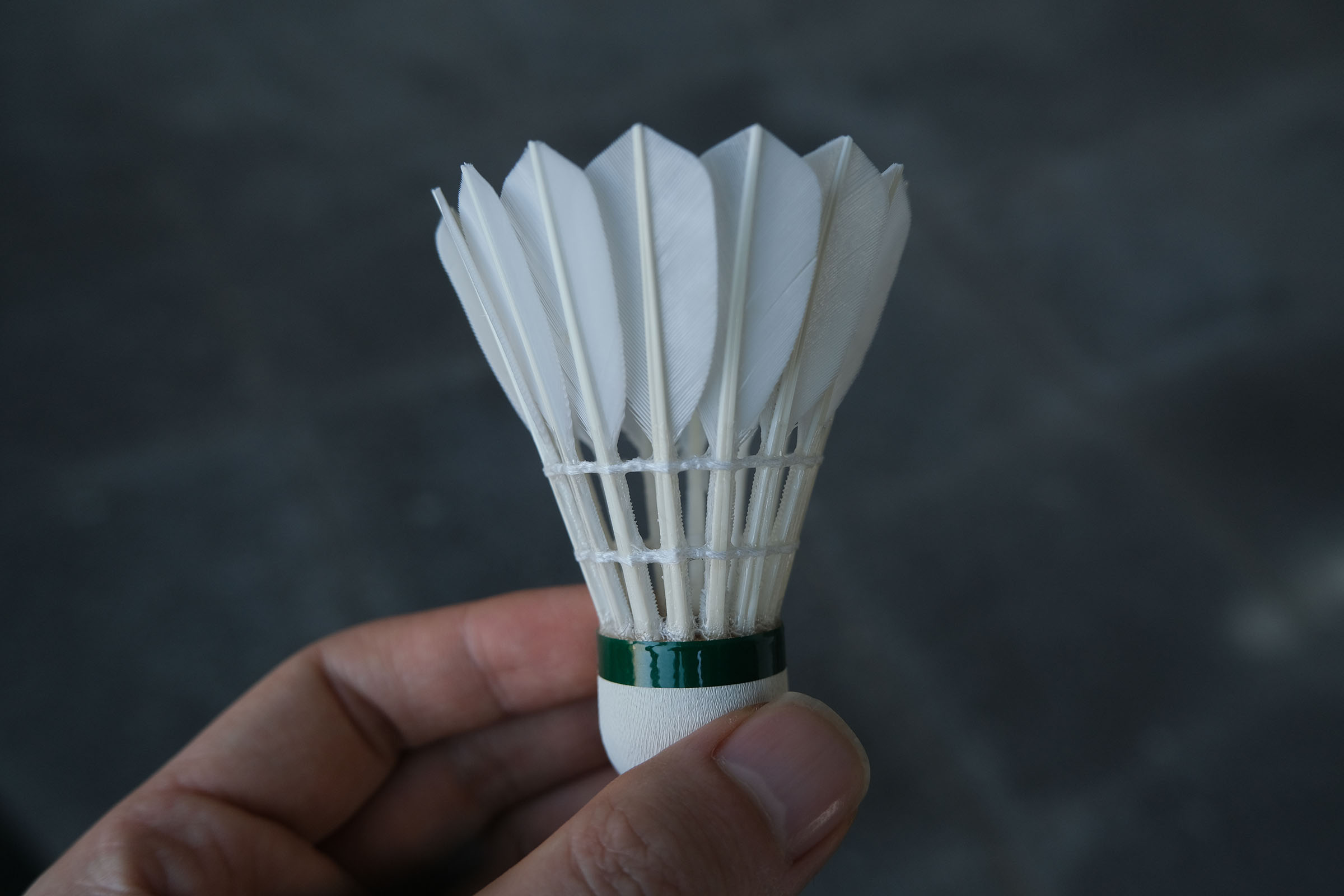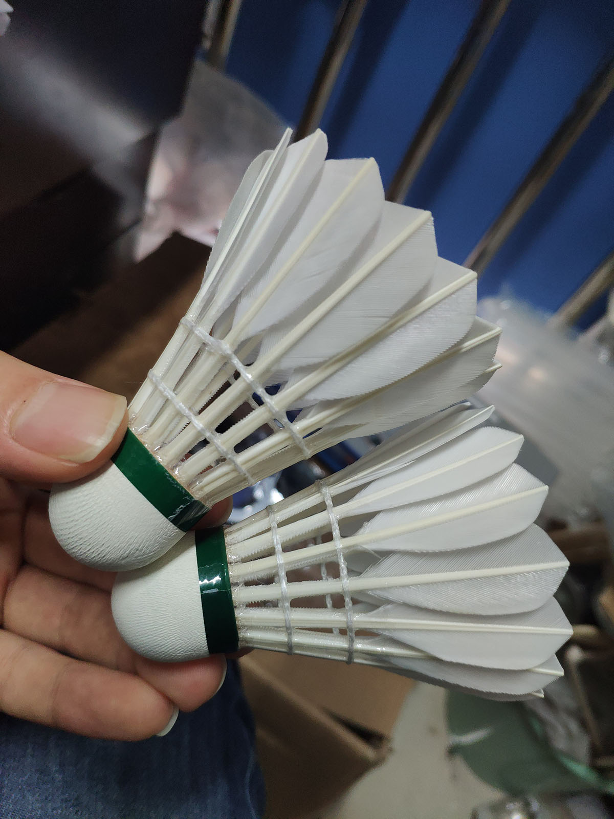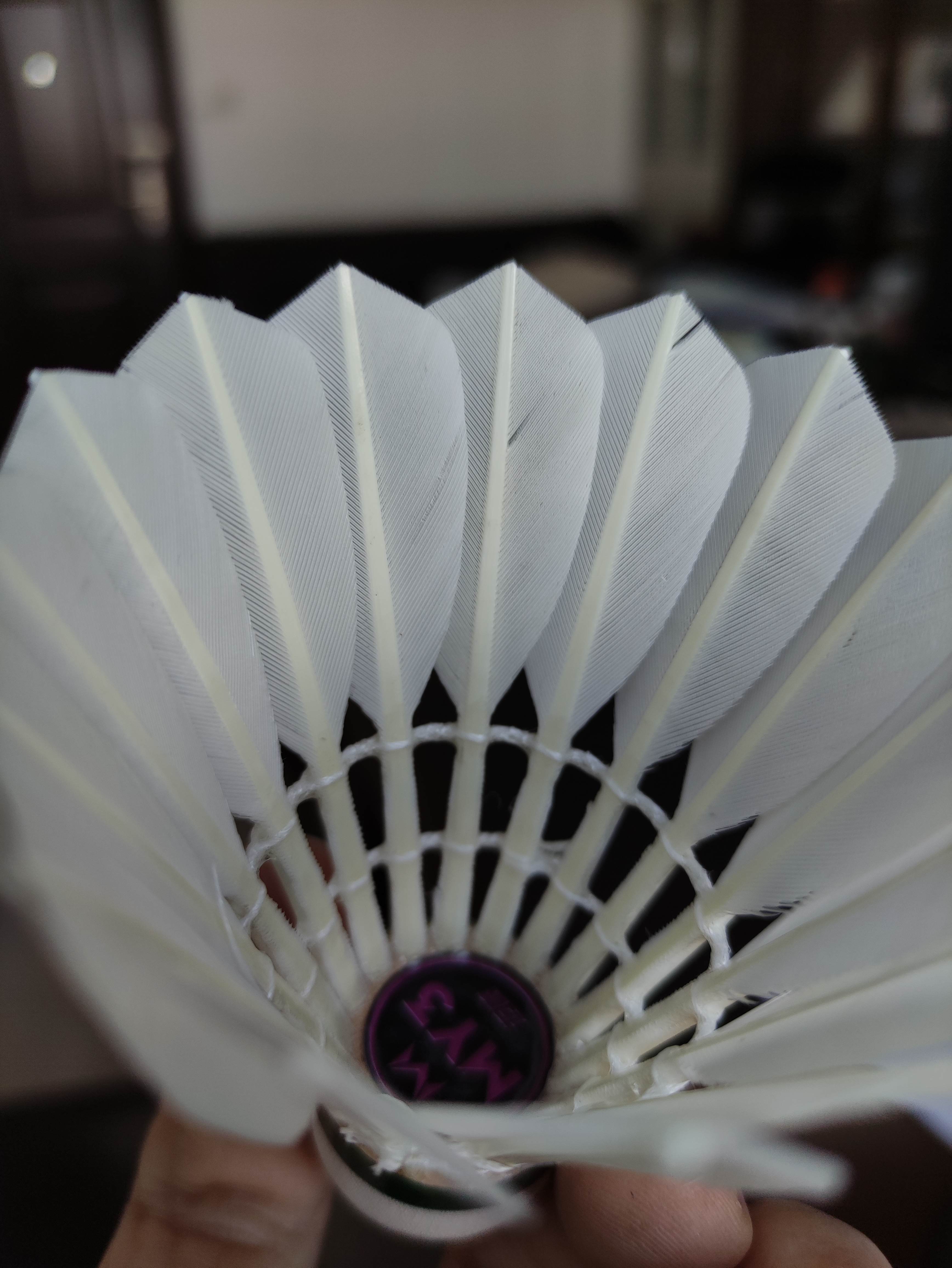 在对比测试的对手中,翎美F4这个官方配置跟李宁的G700(以前的A+100)相差无几,都是稀少的鹅毛方头+全软木,甚至连胶水的特殊香味都一样(目前我打过的鹅毛球中,仅有李宁用这种香味的胶水),要是有业内人士透露出来G700就是翎美代工我都不惊讶。不过品相就略微差了一点。例如右手球窄边比G700明显窄。
