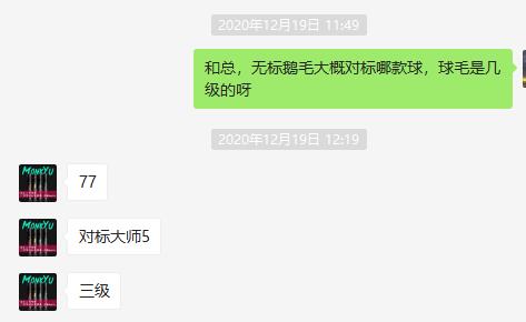 推出初期,我问和尚,MY3对标哪款球?答曰:大师5号。事实证明,和尚实在太谦虚了,大师5号比MY3球毛差距十分明显,飞行弧线也不如,球头用料类似但硬度保持稍弱。唯有胶水不存在MY3的问题。