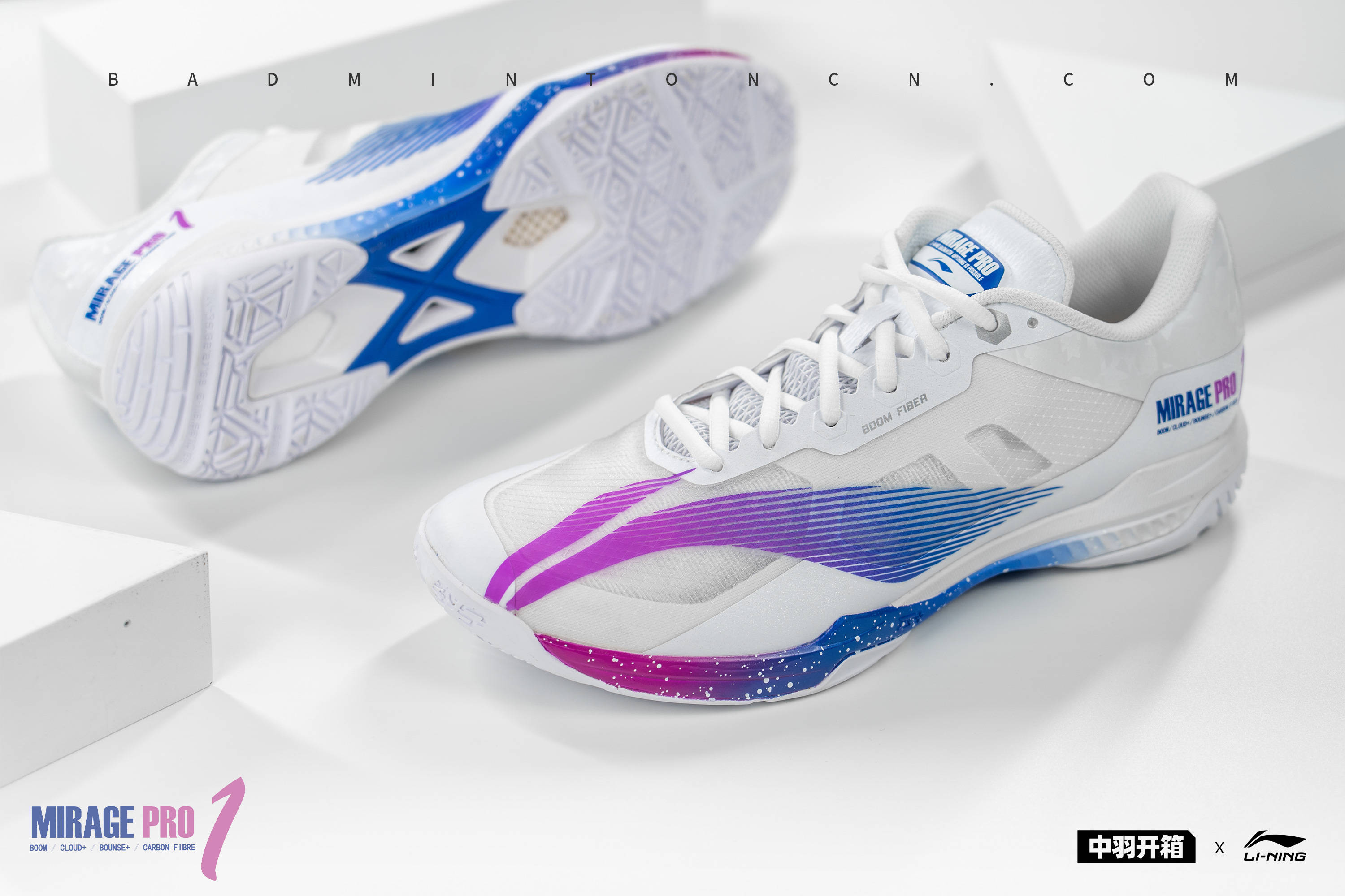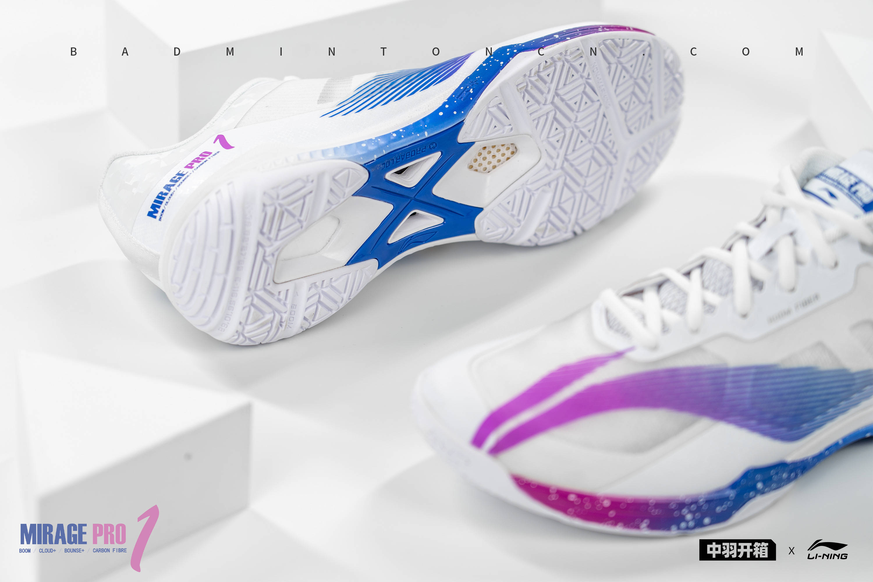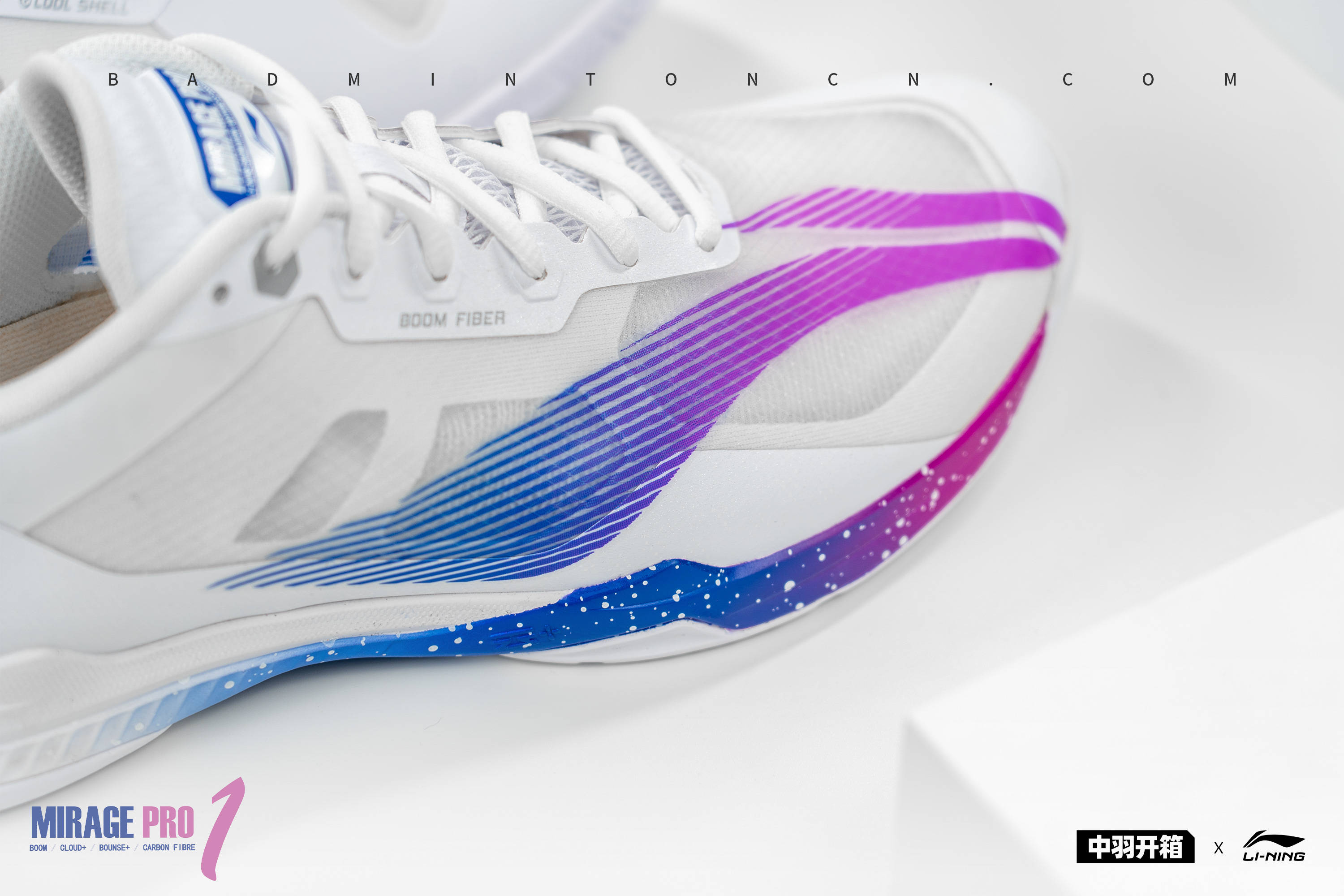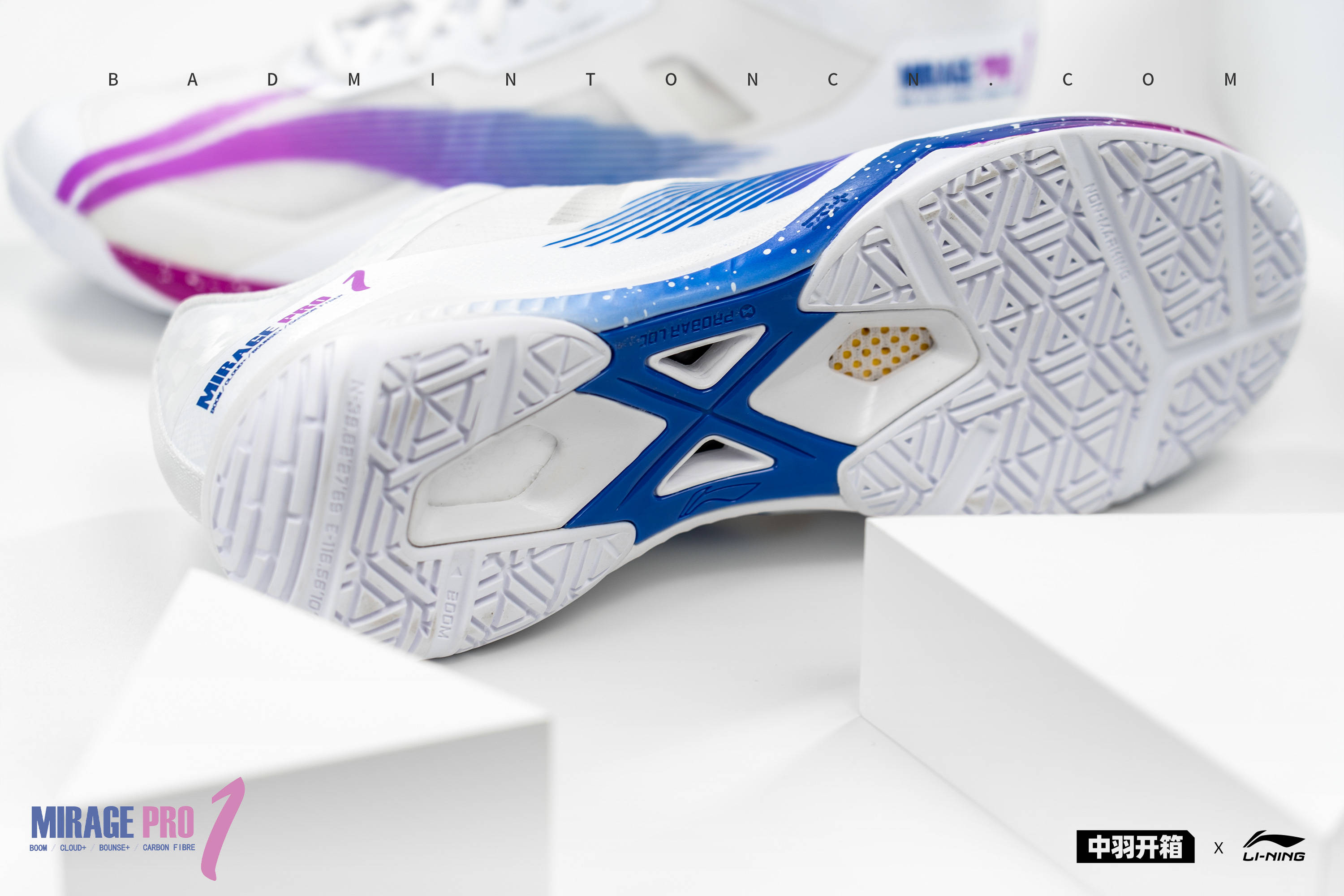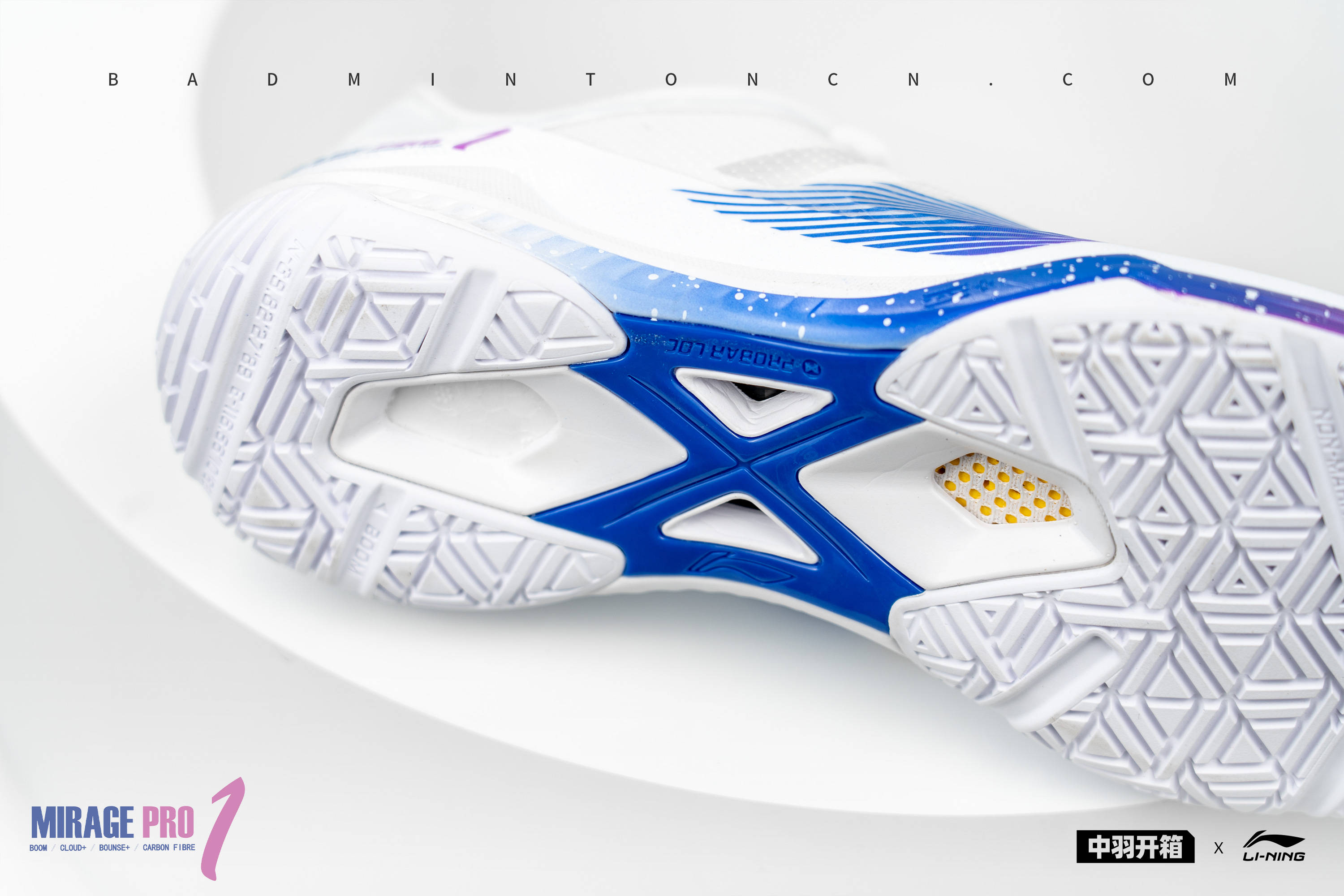 本次影速PRO的主打色,由紫到蓝的渐变释义“青出于蓝而胜于蓝”,中底与LOGO保持同样的色彩,相辅相成,白色斑点无序发散,正如夜空繁星点点。