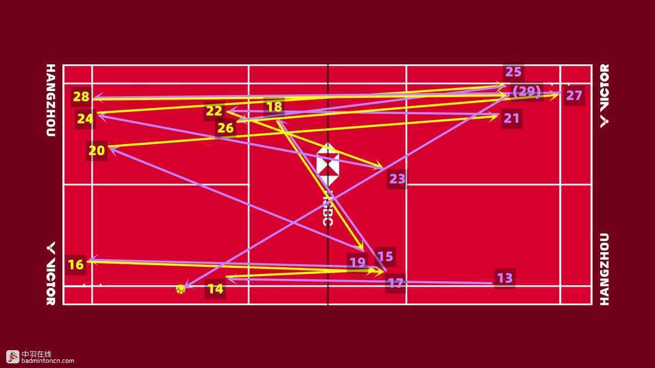 第二局17:19,全场比赛最长的34拍多拍回合。