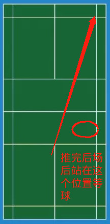 还有第二个点,就是推完之后千万别站在原地不动,而是要立刻上网去抓对面的下一拍过渡球。
