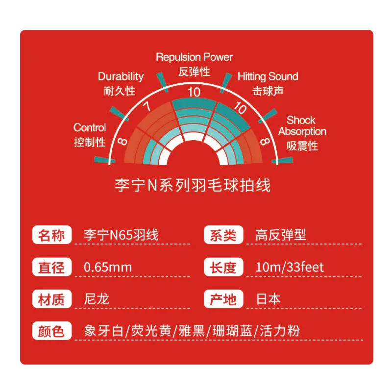 N世代的红厂球线里,我接触得最早的是N65,还记得当时是用在了锋影500上的一款线。后面陆续遇到过几次,都是直接穿在了二手收购回来的球拍上,而没有自己主动拿来穿的记忆。倒不是因为我对它不满,而是它的优秀太过日常,就像《鼓手余命十日谈》里,乐奈找立希搞毕业论文、爱音找立希客串直播间、海铃带立希去海边兜风一样,明明都只是在延续人设的基础上进行的二次创作,读起来却对7年后这种情节的发生填入了极高的可能性。 日常里美好的东西,往往让人在临近不可逆地远离的时候才意识到其稀缺。 线径0.65mm,当时还是高弹线的主流参数,而李宁也在早年累积了不少一号线的生产和推广经验,在这个基础上重新往市场中投入一款可能由新生产线制作的、对标BG66U和VBS66N的线材,是风险及收益都很说得过去的一个做法。 如果拿来纵向比较,N65在打感上对比一号线的升级是毋庸置疑的,我推断主要是线衣的功劳。在硬度相仿的情况下,N65打起来没有一号线那么木,而弹性显然好一点。发力击球时,N65的减震作用也更好,不良反馈能被有效抑制和过滤。最让我用起来身心舒畅的,是N65重杀击中甜区时那一声平地轰雷的爆鸣,以及最终赋予羽球离弦之箭的速度,所给我带来的充沛进攻信心。 横向比较之下,也有优势。与66U相比,我不好说二者的掉磅和衰减速度孰强孰弱,但在长时间掉磅进入了平台期后,N65没有66U那股黏糊糊的肉头,击球反馈清爽一点的同时相对不容易跑线,算是提高了耐用性。而从同一时间由同一位穿线师穿的不同球拍的VBS66N相比,N65的保磅性能也并不显得逊色。有一把球拍我放了2年的N65,最近重新用起来,仍然有着基本的操控感,在发力的下压、吊球、搓放中都保留了合格线的反馈。 实际上,要对一款线作出变量控制条件下的综合评价,平行、长期的比较必不可少,尽管个别单线区断线而导致的偏见不可避免,但说服力的仍要从更广泛的样本分析中提取出来。我认为它比N63这款装备库最高分的红厂线材相比,哪怕它的价格没有惊喜和优势,仍更有资格坐镇李宁线皇的位置。 但它确实好得如同“理所应当”一样,我甚至没想起来还没为它写一篇。就像是第一次听只觉得温柔而伤感的歌,看了歌词却停不住强烈的后劲。初闻不知曲中意,再听已是曲中人。原来小灯和我都还没走出《过惰幻》的那场雨。 这个疯狂星期四本来就不适合更新,我现在得斋戒沐浴坐等晚上10点B站更新了。