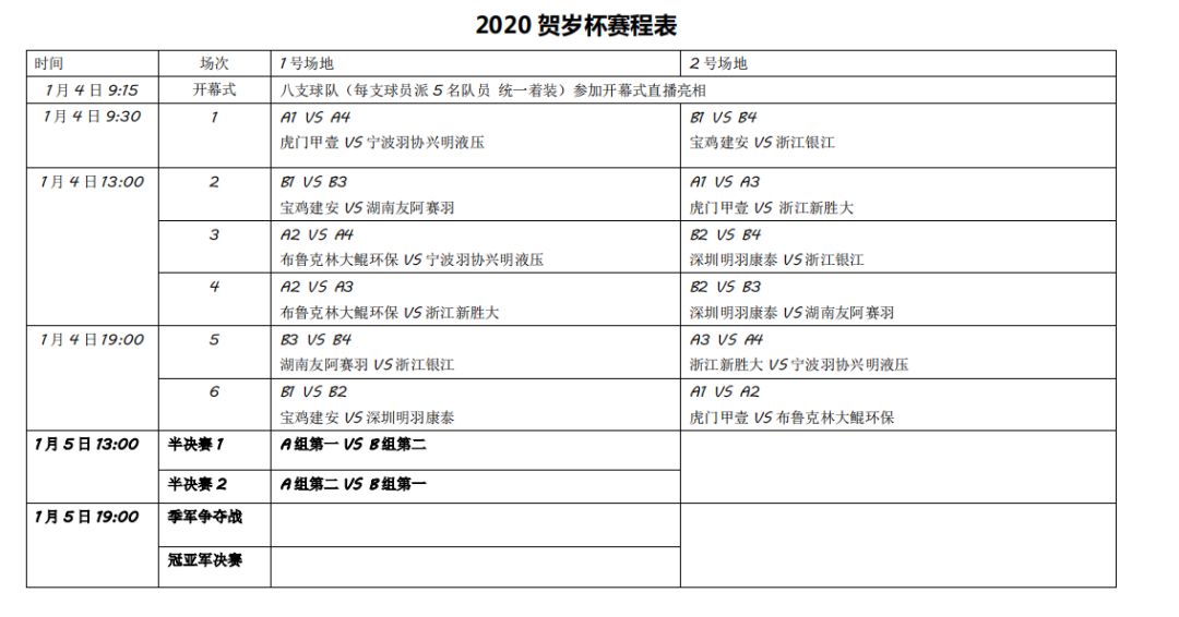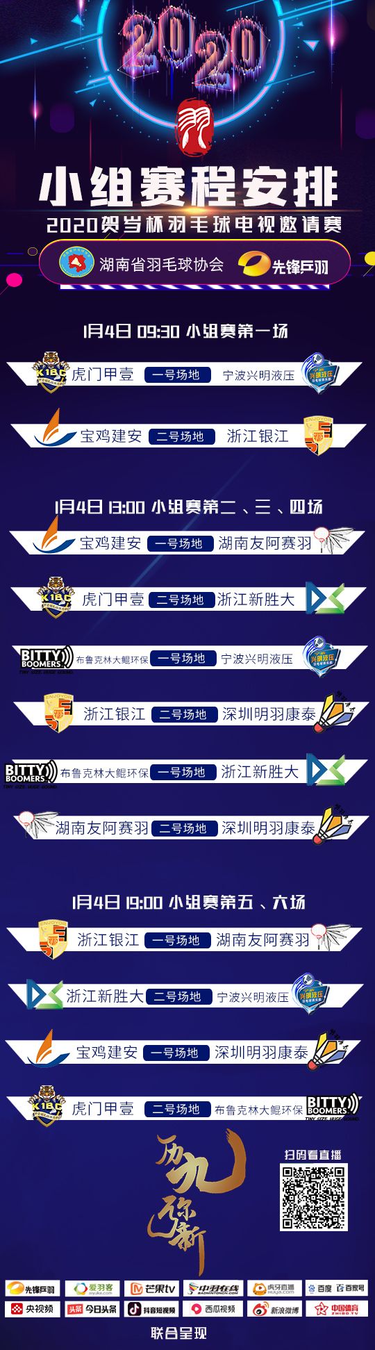 贺岁九年,历九弥新。2020年贺岁杯羽毛球电视邀请赛将在2020年1月4日—5日在湖南长沙东塘电信体育馆重磅开赛,经过抽签,两个分组已经出炉,小组赛谁能率先出线?