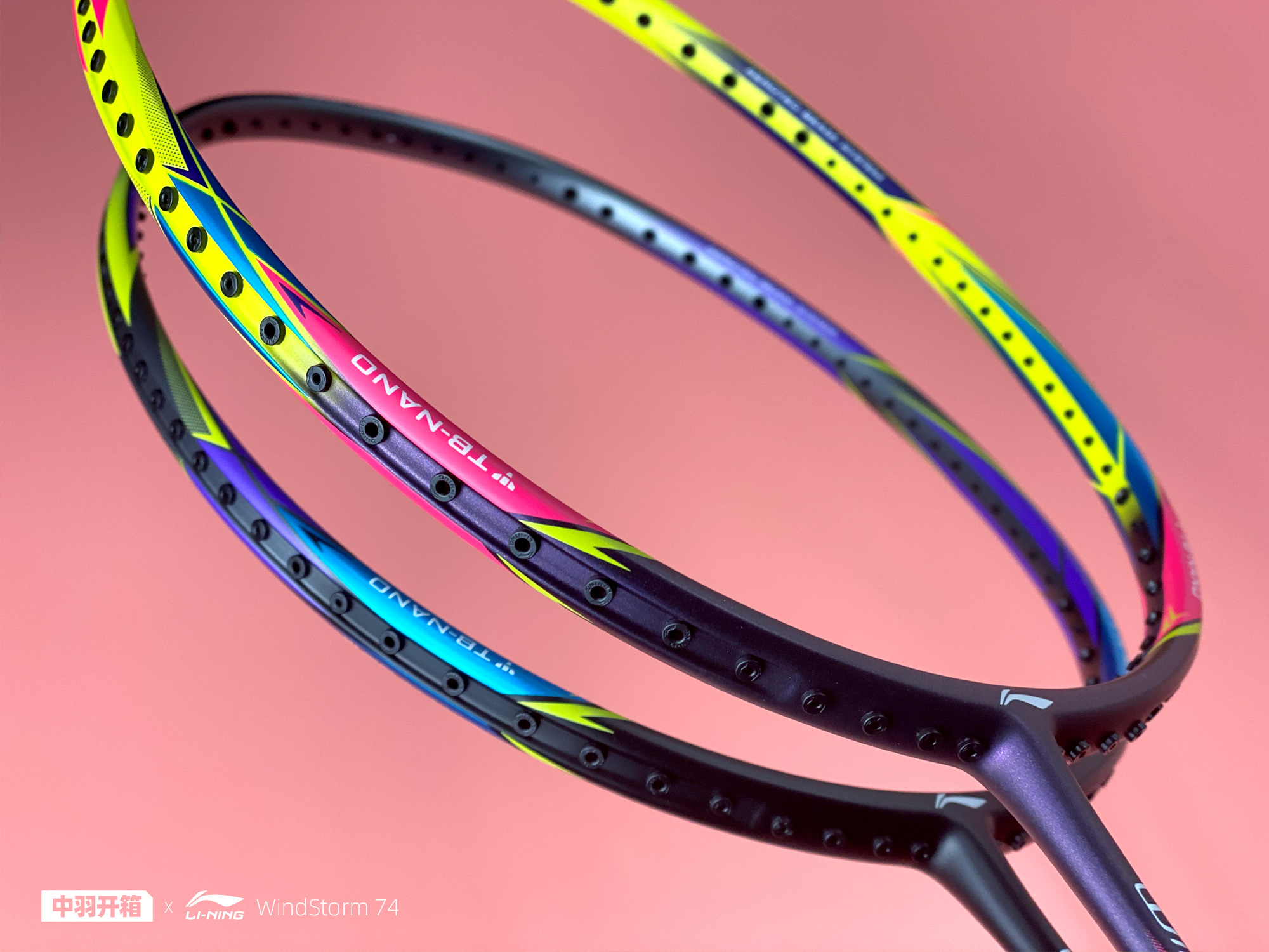 球拍的轻量化是近年来的一大趋势和热点,各大品牌都相应推出了自己的轻量球拍产品,而本期开箱主角正是李宁品牌轻量化球拍新品WindStorm 74(简称WS74),同WS72一样主打轻装耐高磅,74克重可上30磅。有三个可选颜色:炫白/幻彩黄/炫彩灰,开箱的两个颜色是幻彩黄和炫彩灰,都有不错的漆水颜值。个人更喜欢灰色沉稳不闷,而白黄两色更活泼靓丽送女生是个不错的选择。本次开箱仅作图赏分享,之后评测室会带来详细评测,敬请期待。