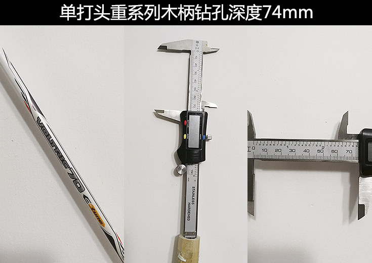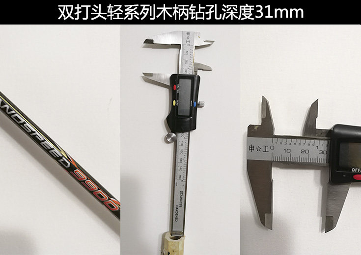 其实羽毛球拍的木柄后面都是中空的。传统球拍在生产过程中,通过使用不同钻孔深度的木柄在调节重量和平衡点的(如下图)