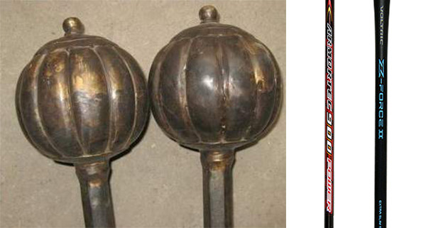 虽然有18般兵器,但实际上可以给他分为三个大类:头重型兵器,如锤;速度型兵器,如矛、枪、棍;和介于前两者之间的全面型兵器,如大刀,剑。而各品牌的羽毛球拍产品线大部分也是这样划分的。