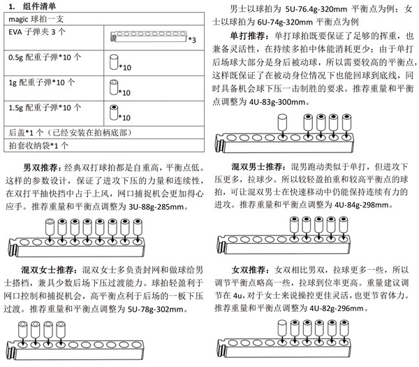 你可以根据自身手感的偏好,像工厂调节钻孔深度一样,自己来调节重量和平衡点。如果不愿意多想,也完全可以按照我们说明书推荐预设配置方案,根据今日所参赛的项目,调节重平。在使用过程中,再进行微调,逐渐找到适合自己的