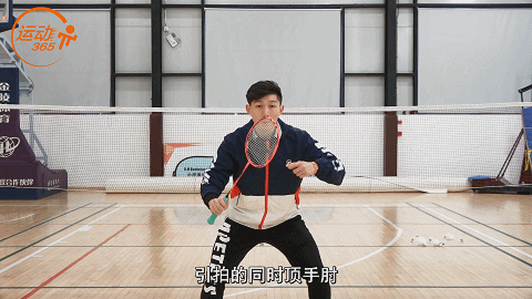 接下来就是另外一个动作要领,引拍的同时,持拍手的手肘要向外顶出去。当我引拍的同时,手指便开始发力。