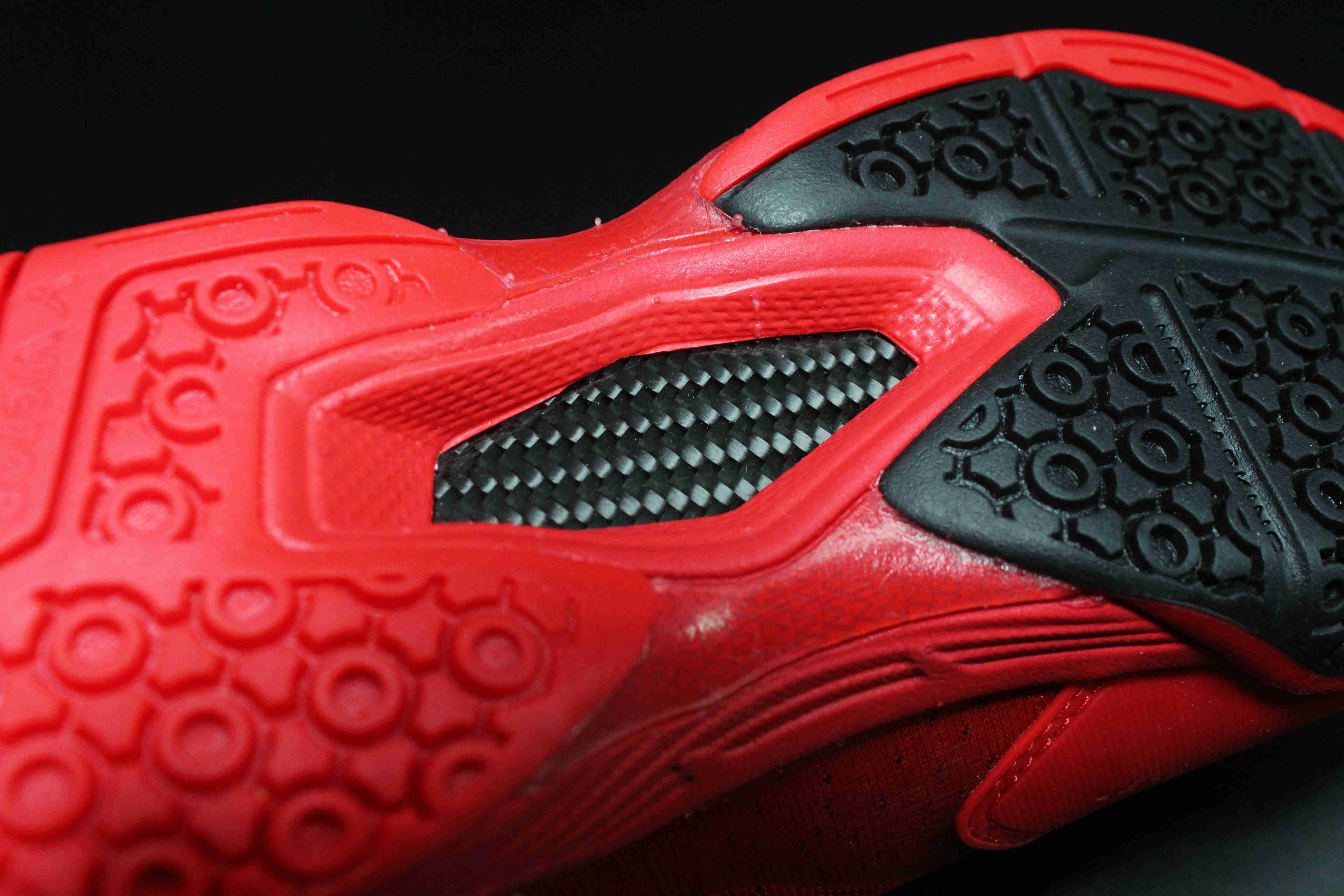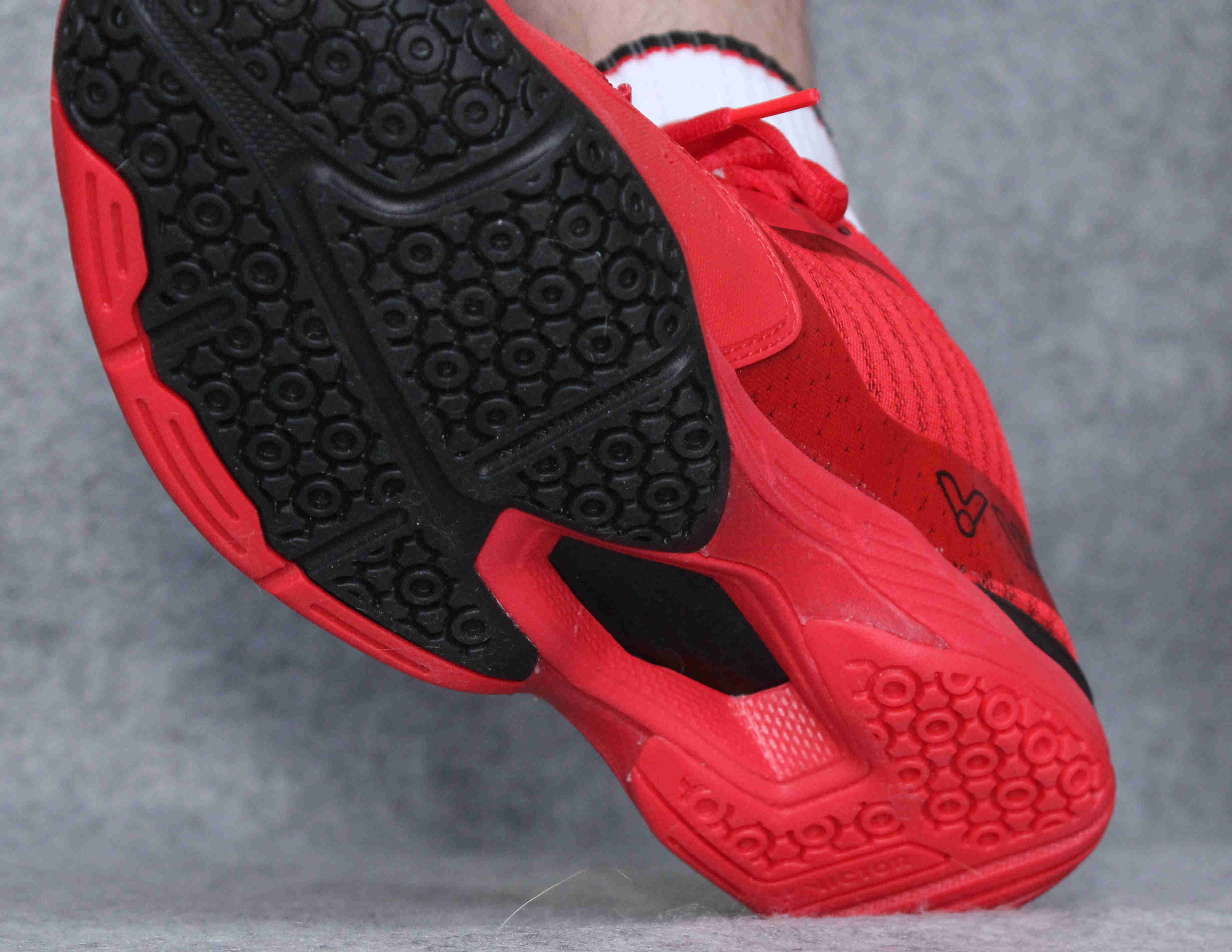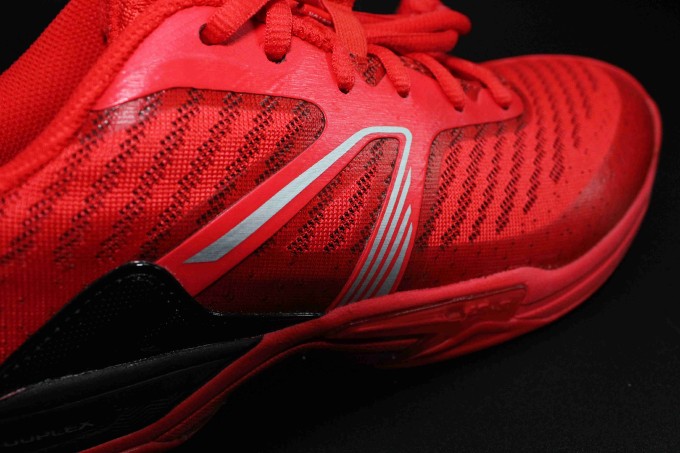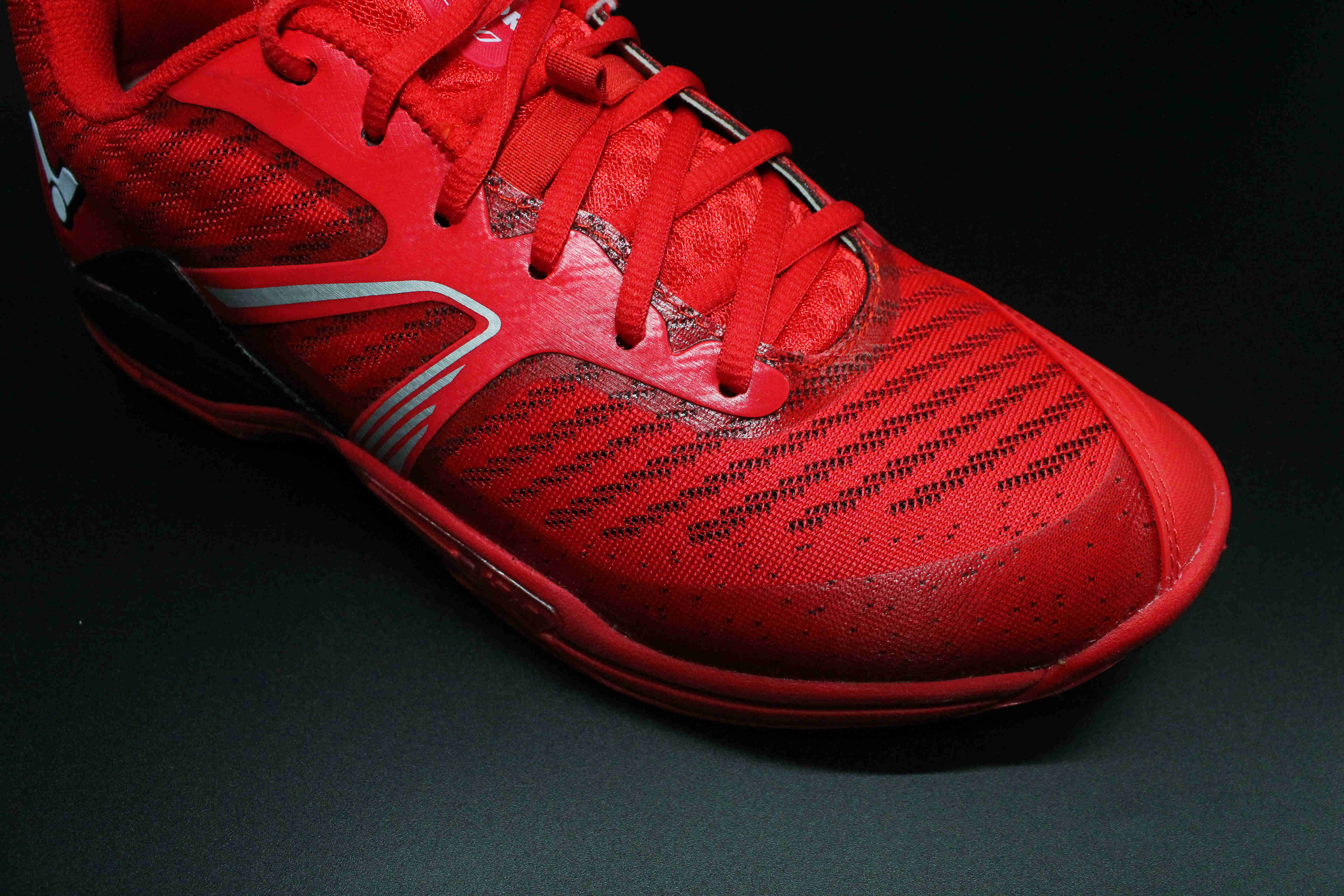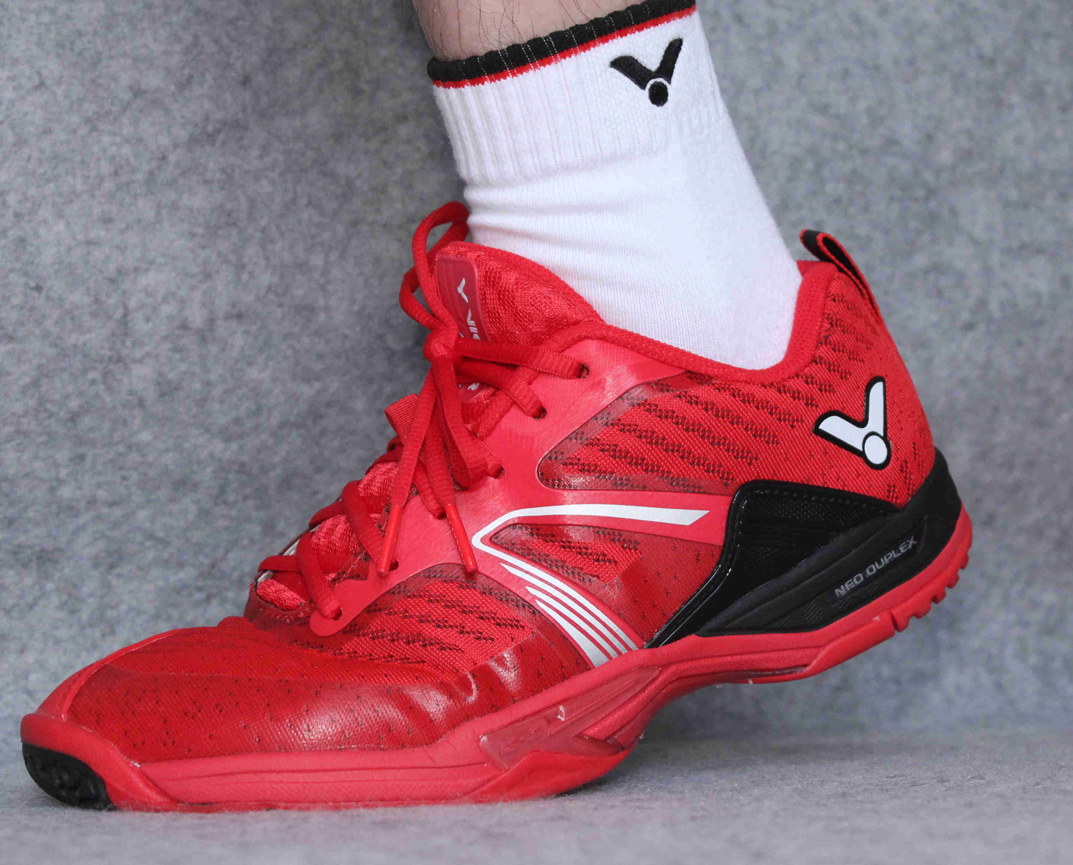 —详细参数 同样以单只41码265mm长度为例,A930的单只左脚重量仅为320g,身为A(全面系列)家族,全鞋重量居然与主打速度类型的S82不分伯仲,比P9200II轻了约20克,着实让我有些惊讶。 火热的绯红侵染全身后跟处点缀以沉着稳健的漆黑表以其下落回弹时提供极具信心的充足保障。 上脚过后修长而又跃动鞋身更是的如烈焰炙烤般的猛烈,汹涌富有活力!结合上贾卡提花科技面料的运用,上脚后科技感瞬间拉满。 —实战体验 就上脚后的第一感而言还是胜利一如既往给我的稳健感,加之贾卡提花面料的运用,在球鞋整体重量减轻的同时让鞋面的弯折较传统革面更加的顺畅,若如无物的丝滑,好似鞋面直接粘连在了脚背。 鞋楦的宽度一样使用的是2.5标准宽度3E的V型鞋楦,鞋仓空间分布紧凑合理,鞋舌处海绵的加量也让贴合更加舒适,小黄我是罗马足穿上后感觉较之同为2.5V楦的A930原版较为接近。 值得注意的是由于小黄我的脚踝比较瘦,在后跟的包裹体感上,由于A930的斜口设计偏向于宽阔,所以A930会更加适合脚踝较“肉“的球友。