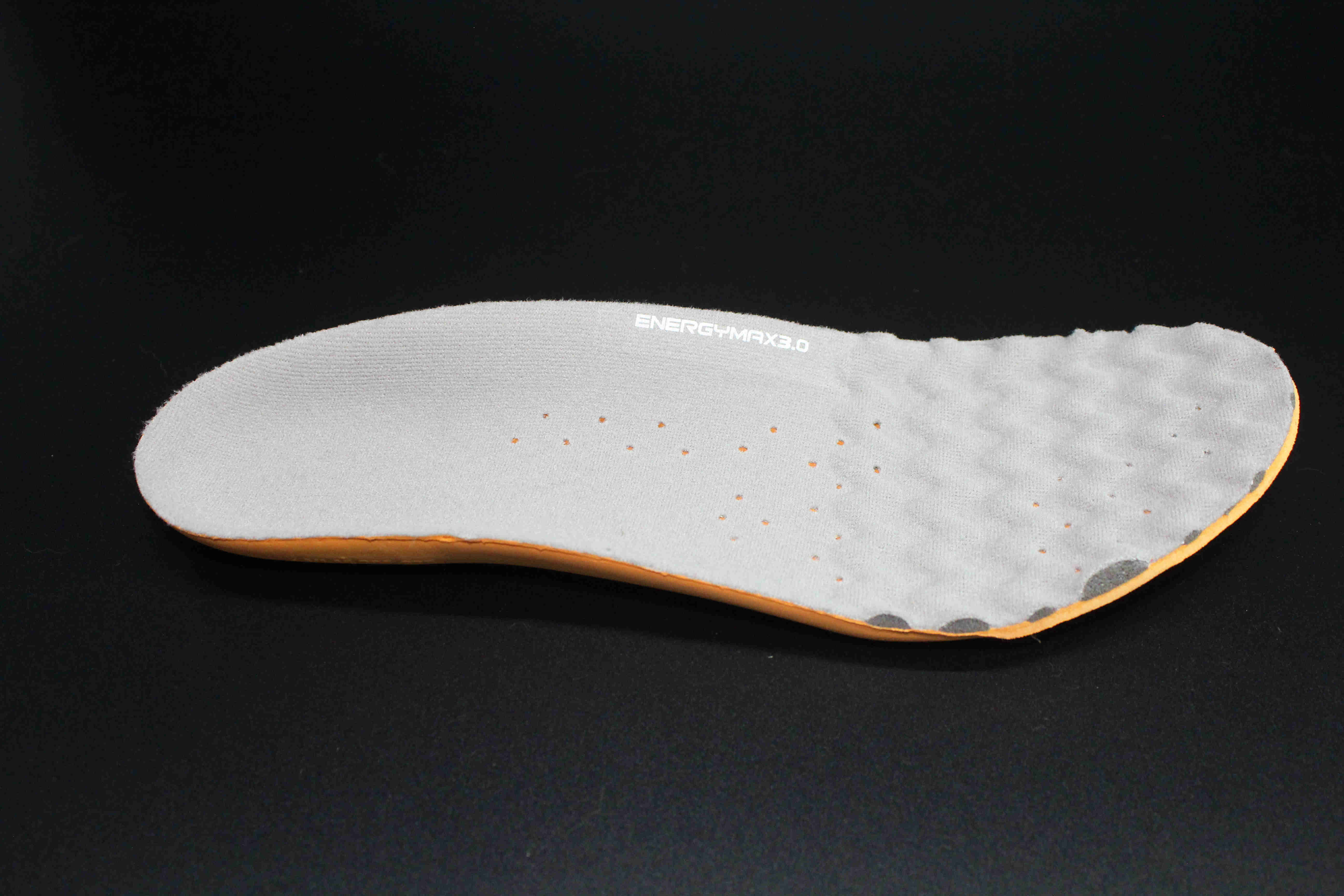 —后跟缓冲 重头戏就是这次也是严格意义上胜利第三双与P9200\P9310同样搭载了E-TPU由聚氨酯颗粒材料发泡制成,封闭的颗粒发泡成型后具有优异的回弹性及形变恢复能力,长久穿着不易变形,性能明显优于传统EVA材料,带给穿着者舒适缓冲与优越弹力的脚感。 下落时的缓冲的瞬间有一种像是夹心“雪丽糍”的挤压回弹,弹性上限也由外部的羽化弹性中底的后跟得到较好的形变束缚,不至于乱弹。