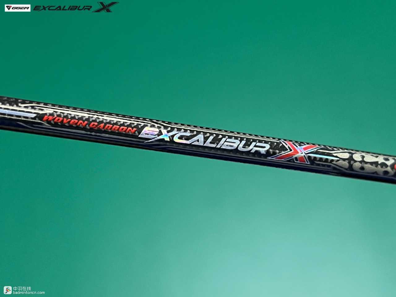 中杆上的“EXCALIBUR”字样格外显眼,右侧富有层次的“X”为这支涂装整体偏复古的球拍注入了一丝现代元素。