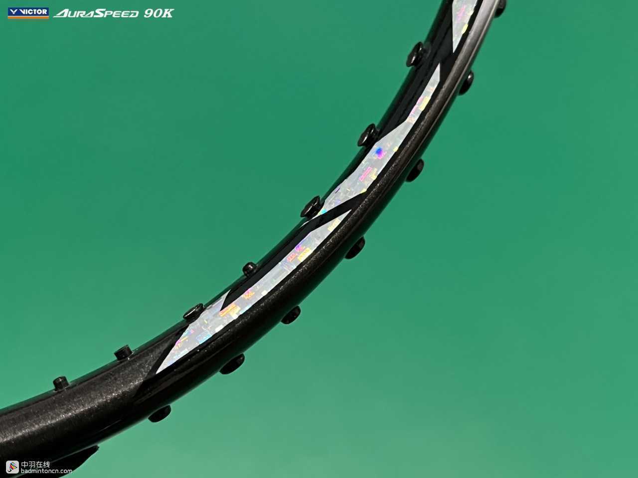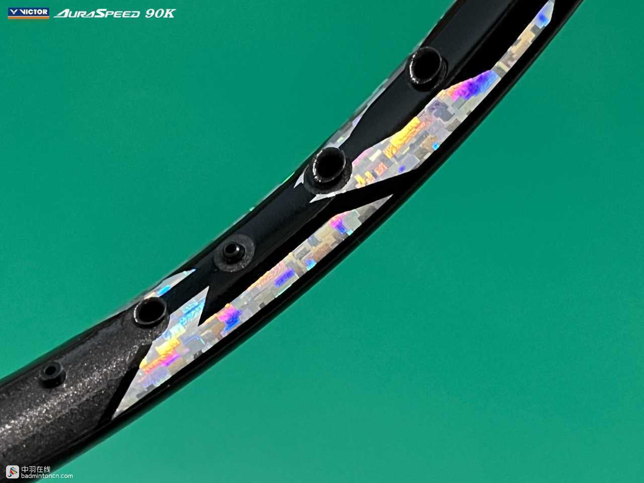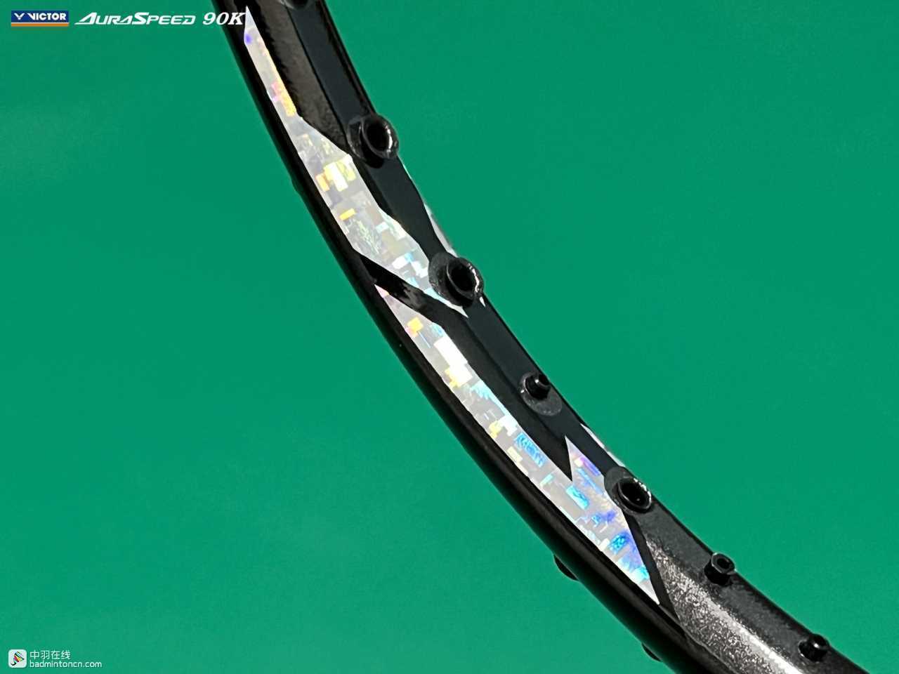ARS-90K的拍框涂装采用神速系列一贯的对称设计,T头两侧的镭射贴纸在光照下闪烁着小方块状的彩色光芒,极具科技感!