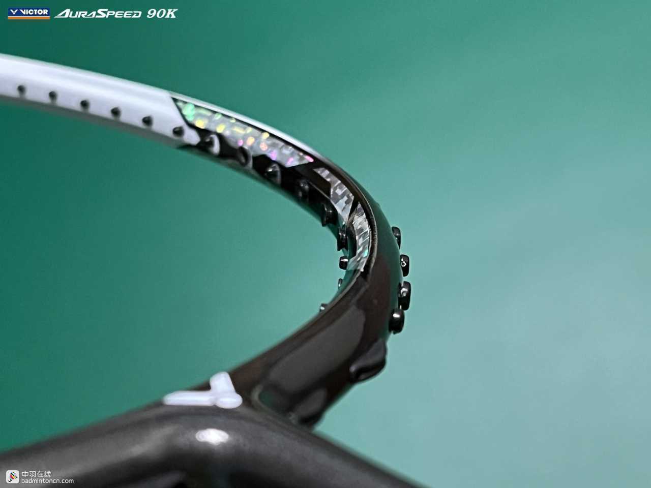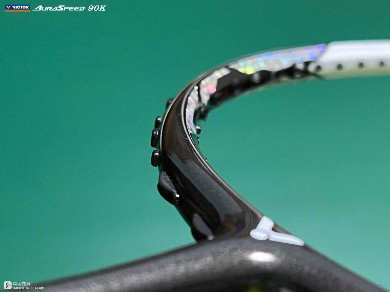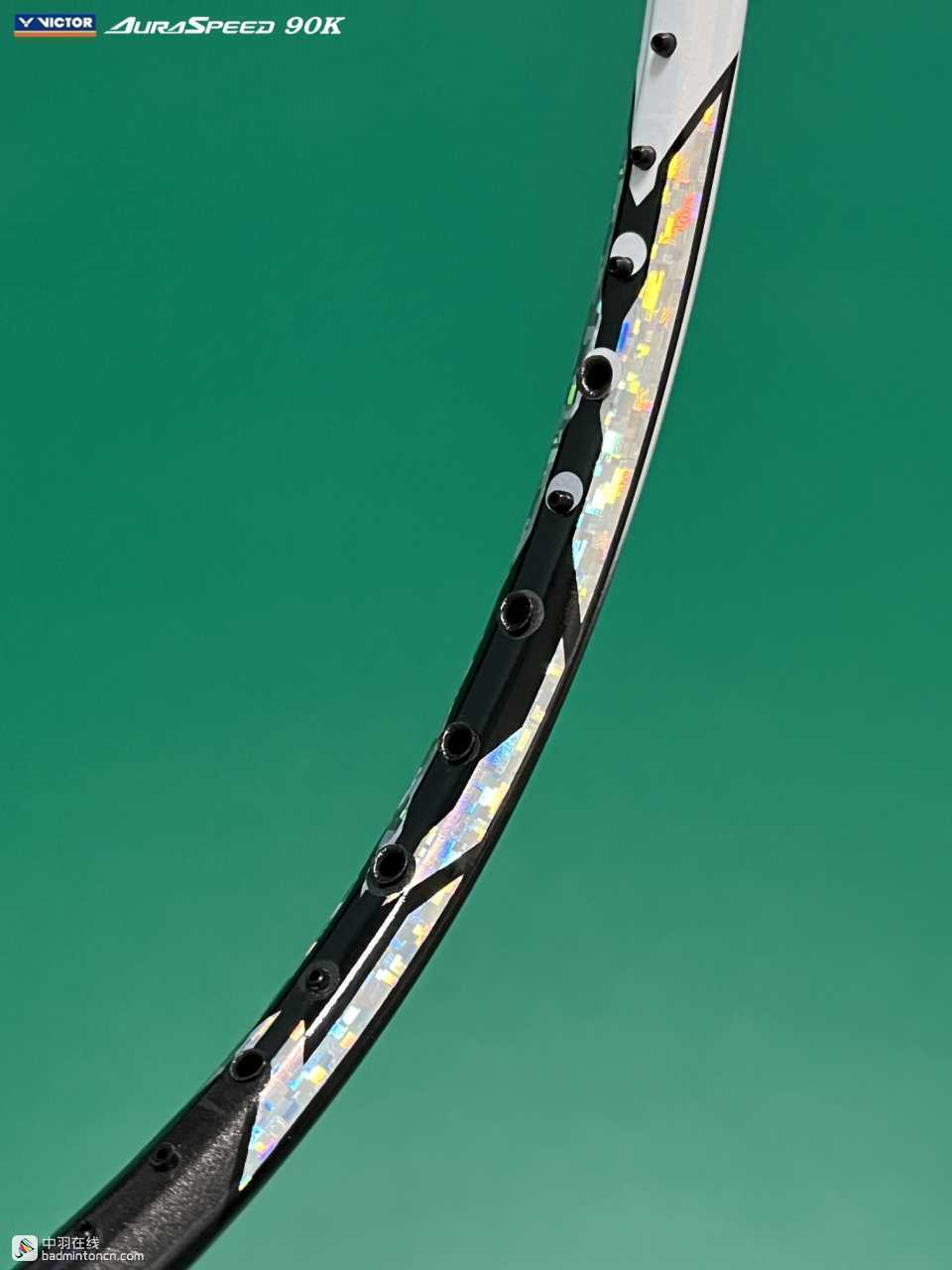 ARS-90K的拍框涂装采用神速系列一贯的对称设计,T头两侧的镭射贴纸在光照下闪烁着小方块状的彩色光芒,极具科技感!