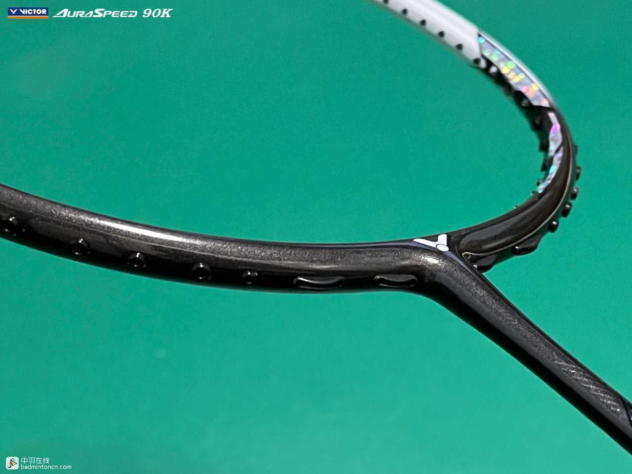 ARS-90K的框型和ARS-100X基本相同,都是底部T头附近相对圆润,靠上的部分则更加锋利,同时拍框侧面3点、9点位置以上部分采用了长线槽设计。唯一的区别在于ARS-90K在拍框顶部12点方向以及侧面3点、9点方向拍框内侧均有浅凹槽,而ARS-100X仅有侧面有这种浅凹槽设计,顶部12点位置没有。