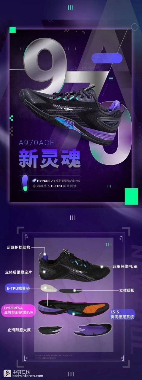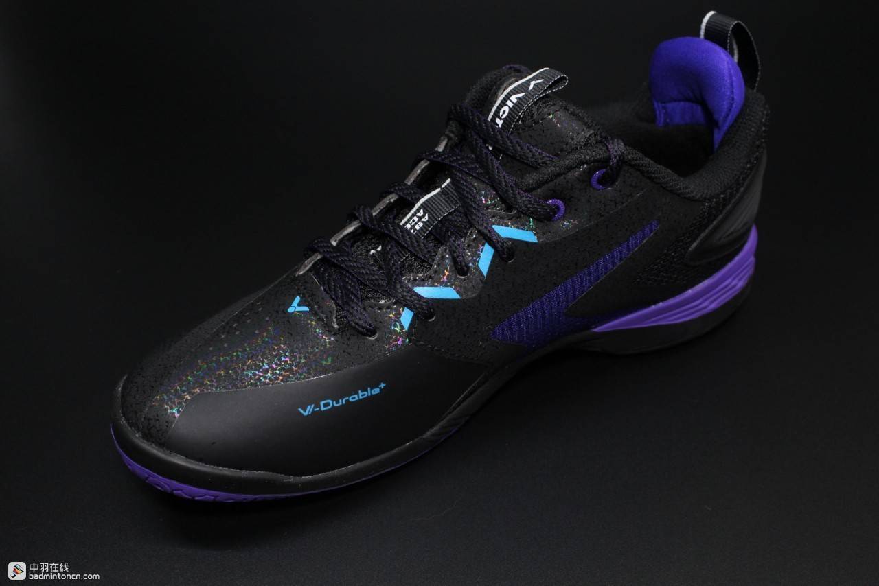 本次的A970ACE球鞋依旧是今年胜利新品一脉相承的暗黑色系,黑色的鞋身搭配幽暗的幻紫色,沉稳中有透露着几分神秘,然后这个镭射电镀喷漆还是有点点酷炫嗷,算得上是这双球鞋的点睛之笔了,尽整些没用的哈哈哈不过我好喜欢。