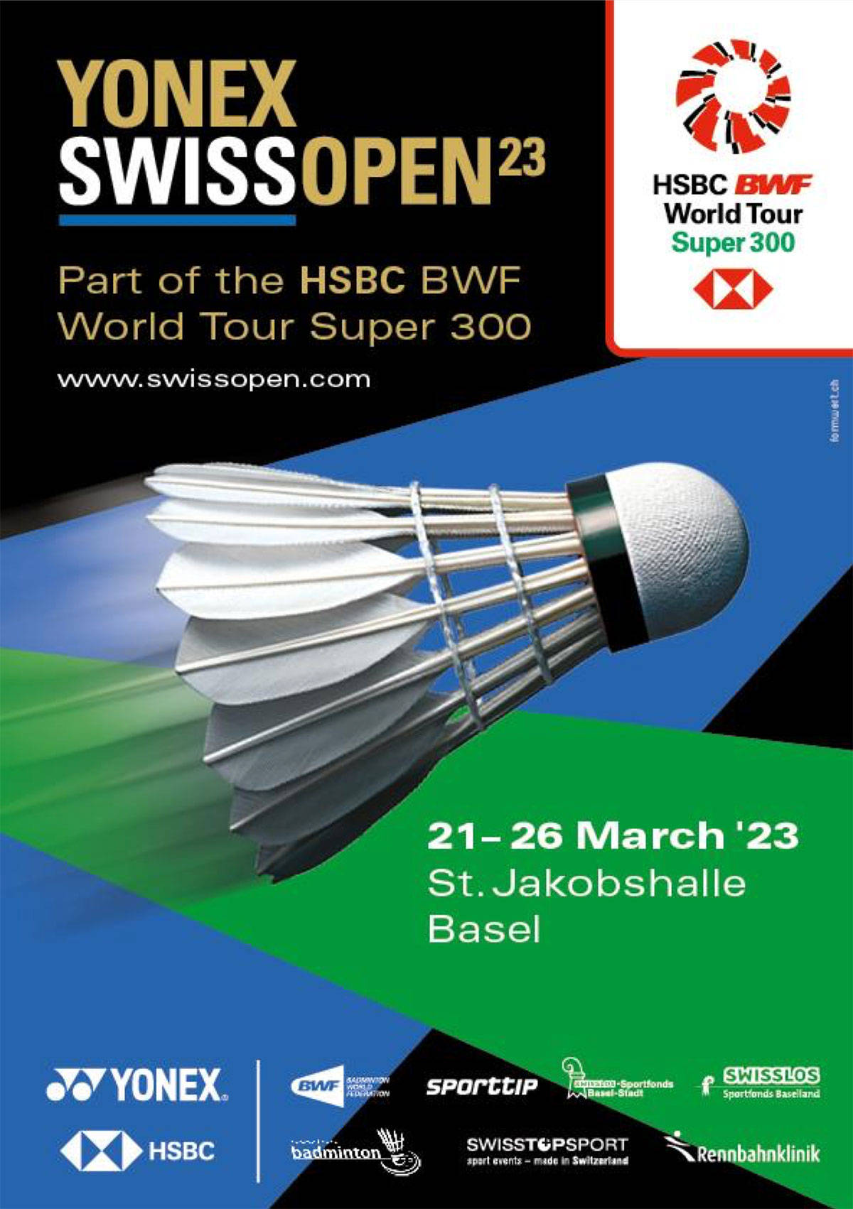 2023年瑞士羽毛球公开赛将于3月21至26号在巴塞尔的雅各布综合体育馆(19年世锦赛主竞技场馆)内举行,级别为Super300赛,总奖金为210000美元。