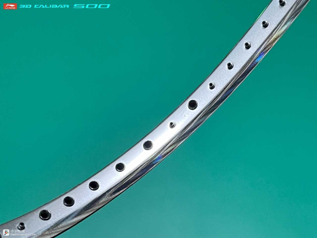 此外,风刃500在拍框外侧3点、9点位置以上部分设置有线槽。长线槽的设计将球拍上半部分的线孔加以隐蔽,减小迎风面积,降低挥拍时的空气阻力。