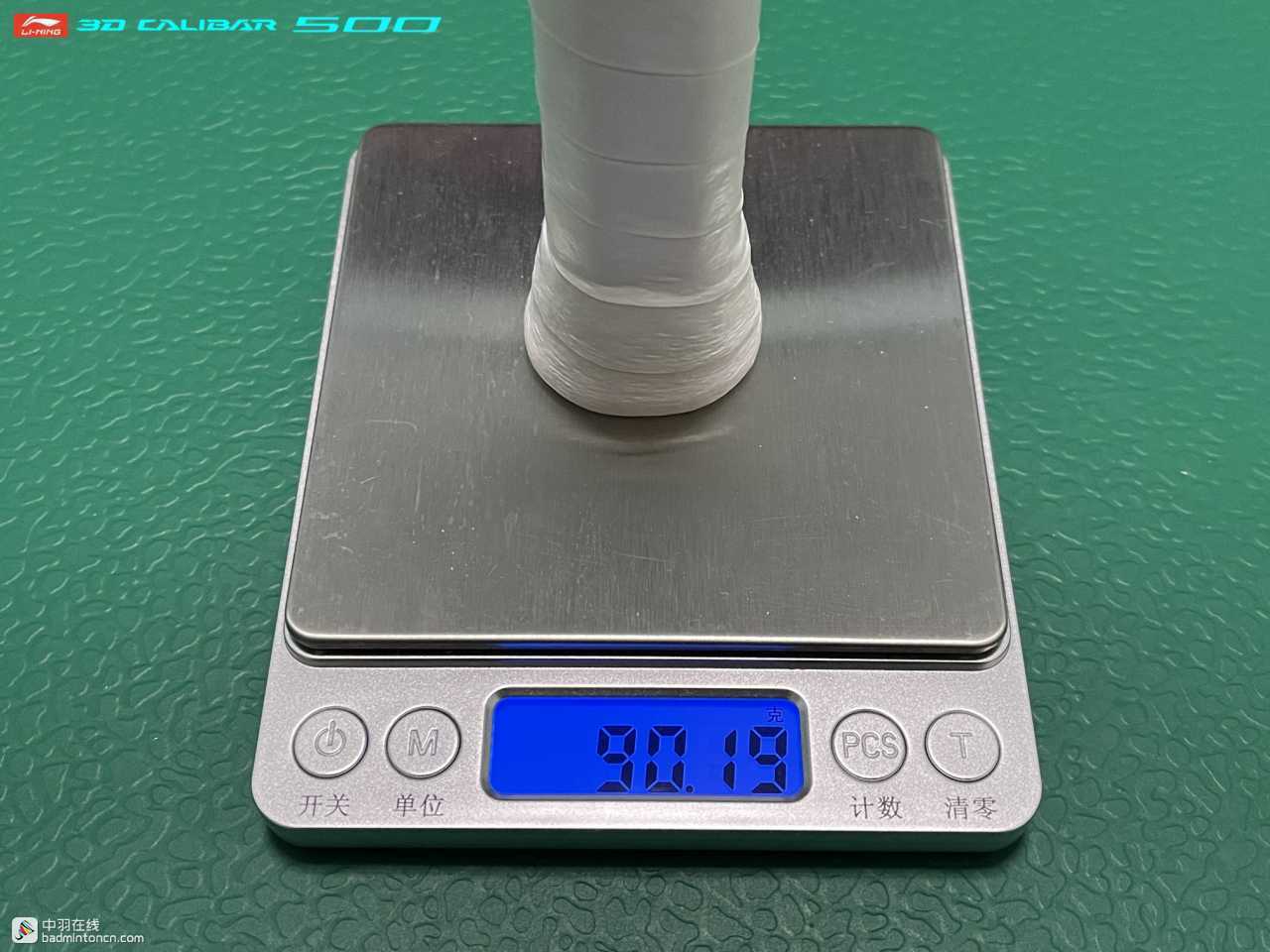 上线(李宁N63线,26磅)和手胶(缓震膜+李宁GP1000手胶)后重约90.19g,平衡点约303mm。