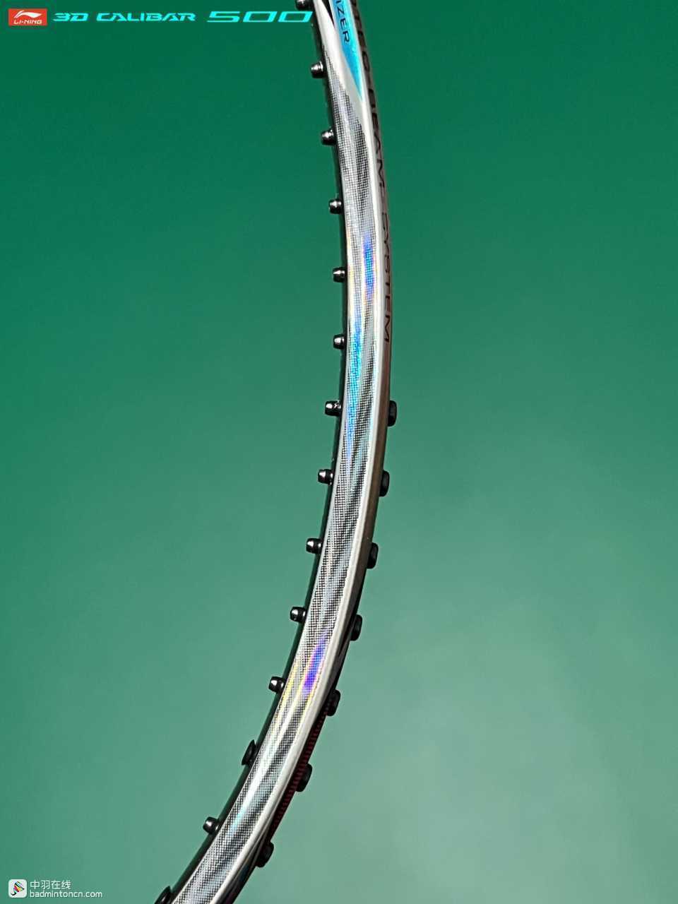 风刃系列球拍都有一个最显著的特征,即框型采用李宁的专利技术“3D CALIBAR”立体风刃框型科技,风刃500自然也不例外,这种框型的特点首先是全拍框破风,由拍头顶部一直延伸到T头处,甚至在靠近T头的中杆上部也做了破风处理。