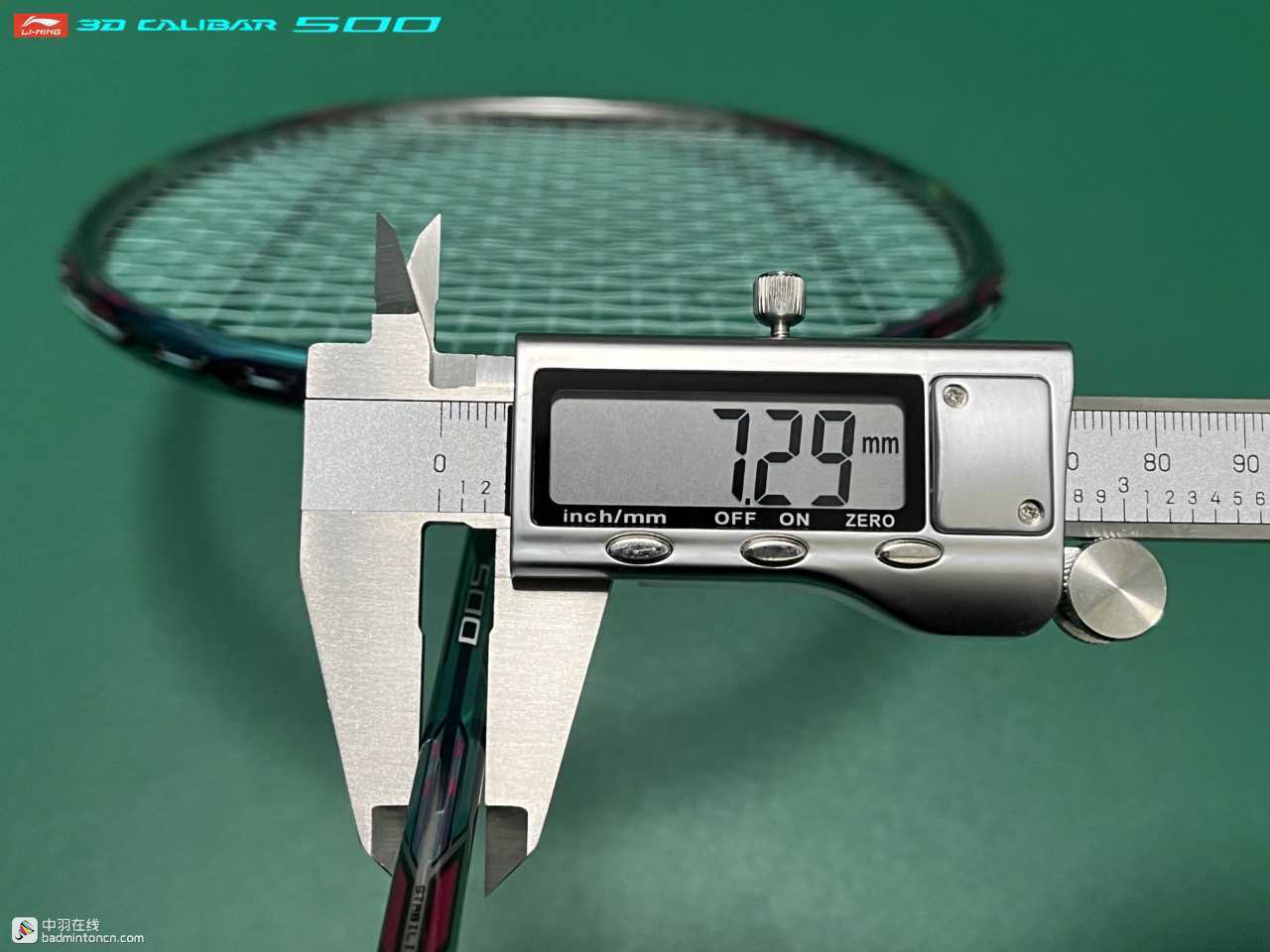 经过实际测量,风刃500拍框底部(靠近T头处)宽度约为12.43mm,厚度约为8.17mm。