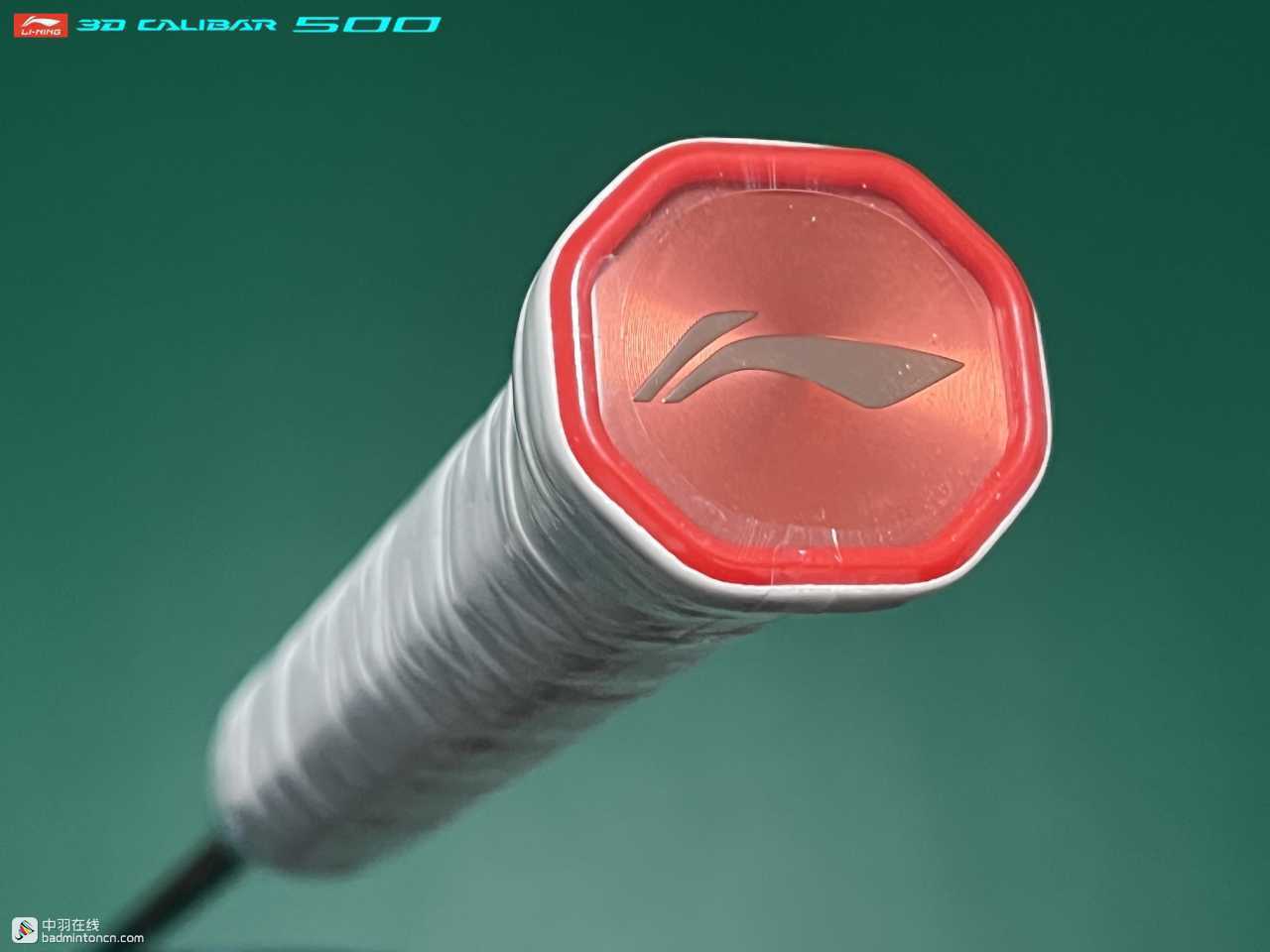 风刃500采用木质手柄,底盖为李宁中端球拍标配的金属底、金色LOGO底盖。