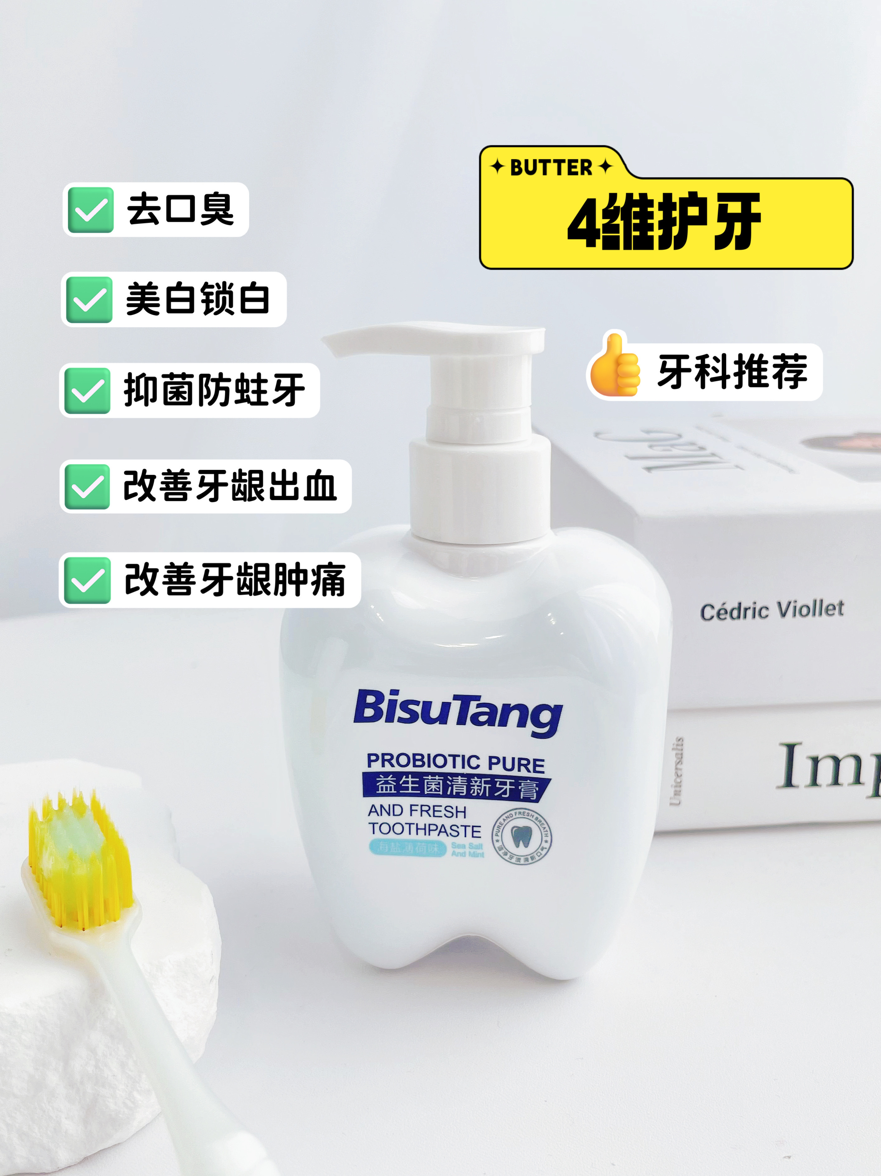 天天刷牙,早晚都刷牙,为啥牙齿还是黄?嘴里还是不清爽?因为牙膏没用对,再使劲也刷不掉任何口腔问题.......牙科推荐的四维护牙,绝对是你用过一圈牙膏下来最后的归宿!碧素堂益生菌牙膏就像是牙齿的吸尘器!口臭、牙黄、牙龈出血、蛀牙、牙菌斑、牙龈肿痛上火......通通管!