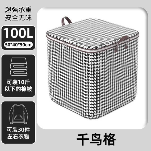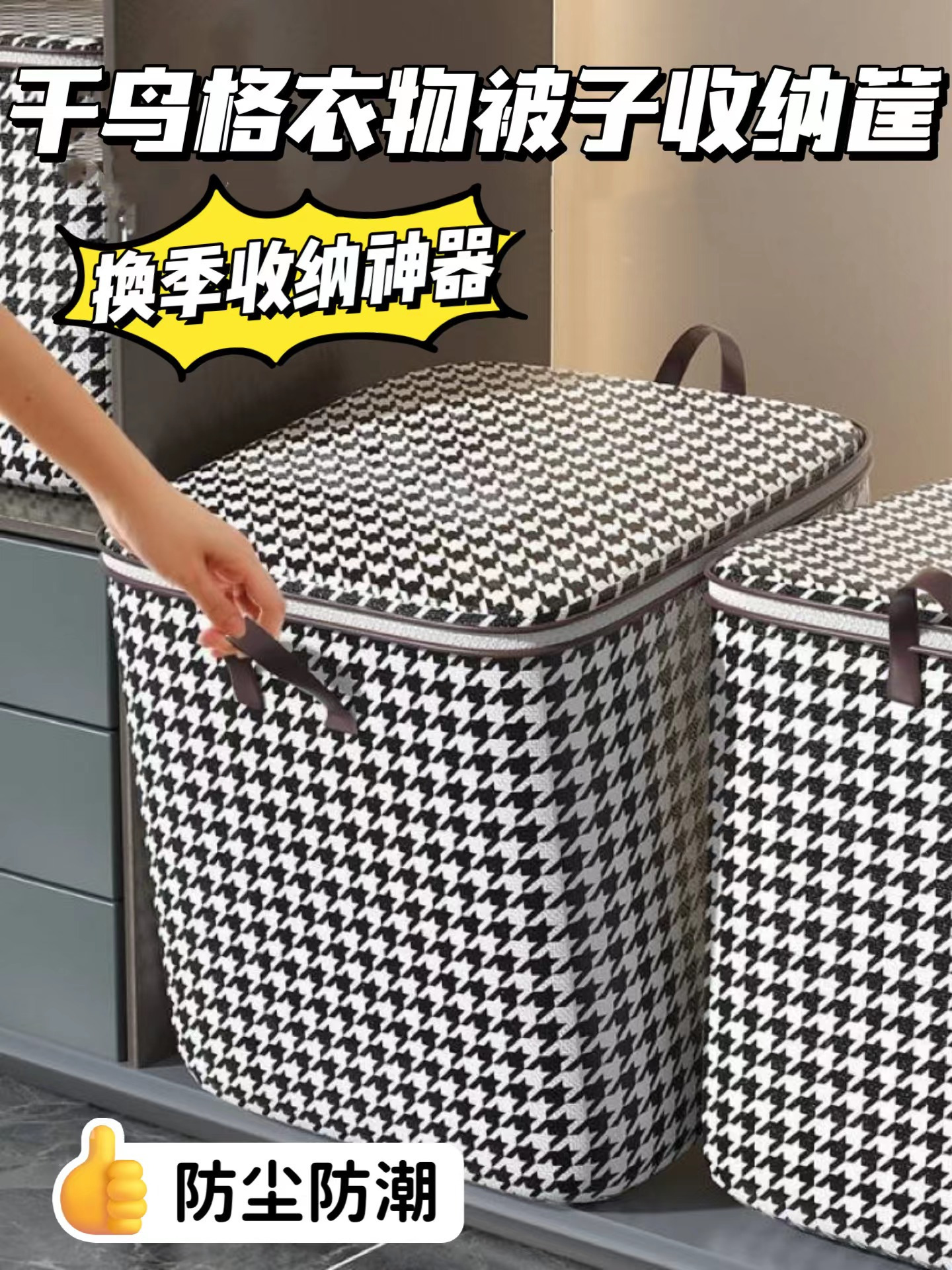 ✅2个千鸟格衣物被子收纳筐         50份100L超大容量巨能装! 不用时还可以折叠收纳,一点都不占空间