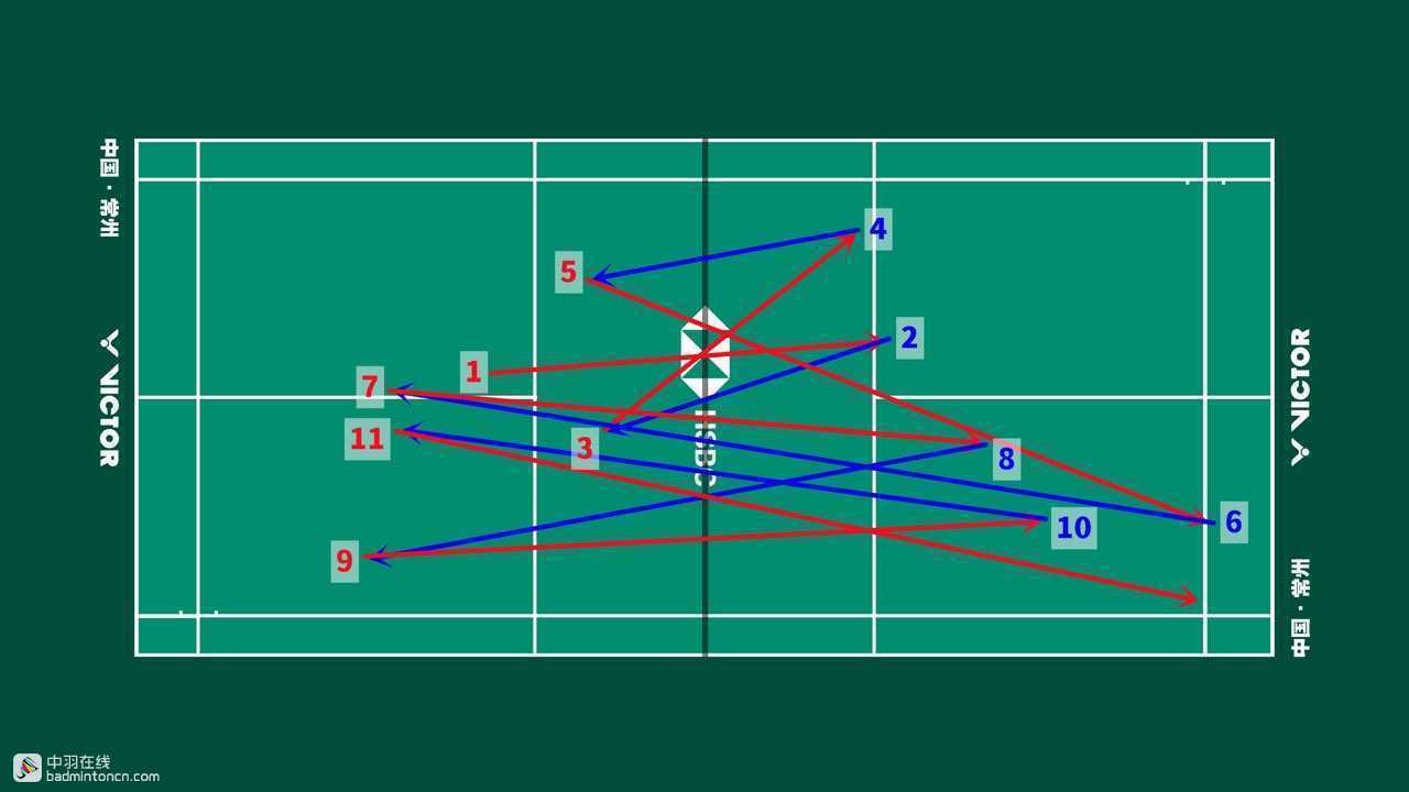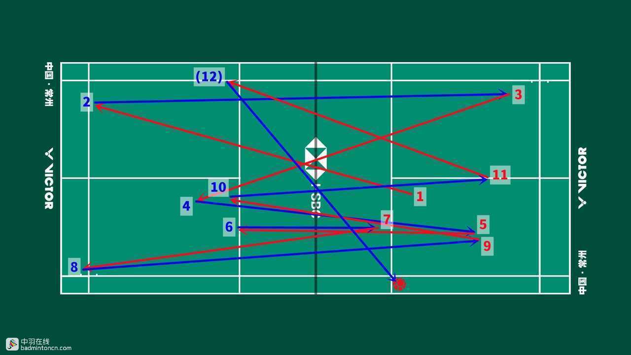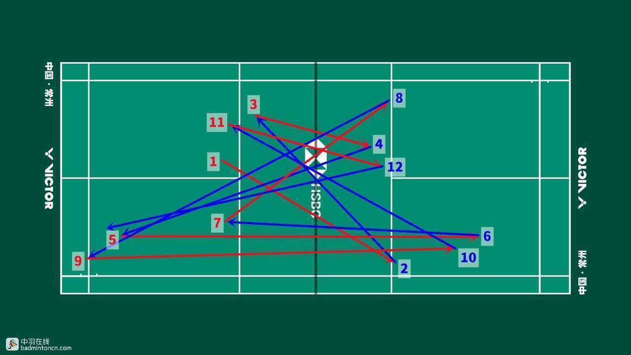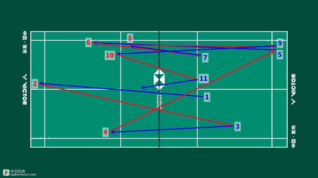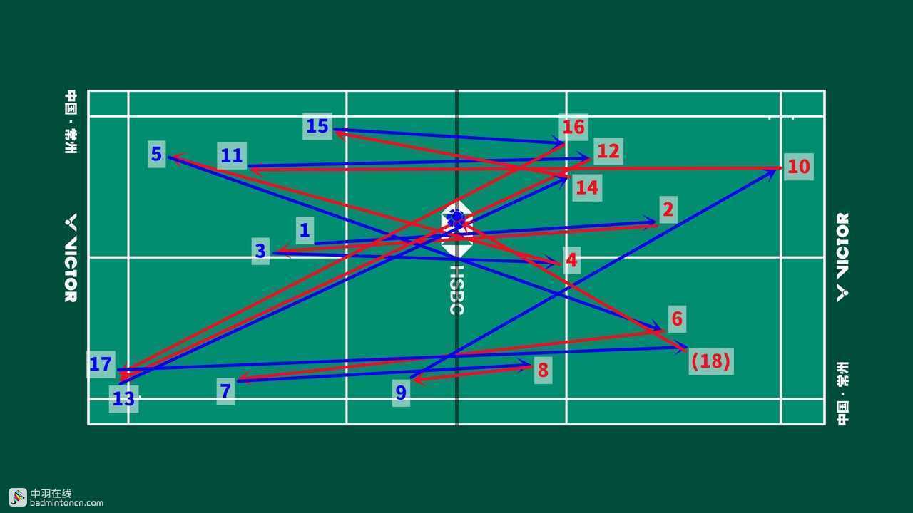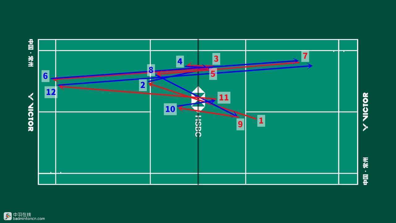 安赛龙发后场,接杀挡斜线,反拍挡网后迅速抢推陆光祖正手底线,尽管处于防守但依然非常积极,最终在挡网中分斜线导致陆光祖率先出现失误。