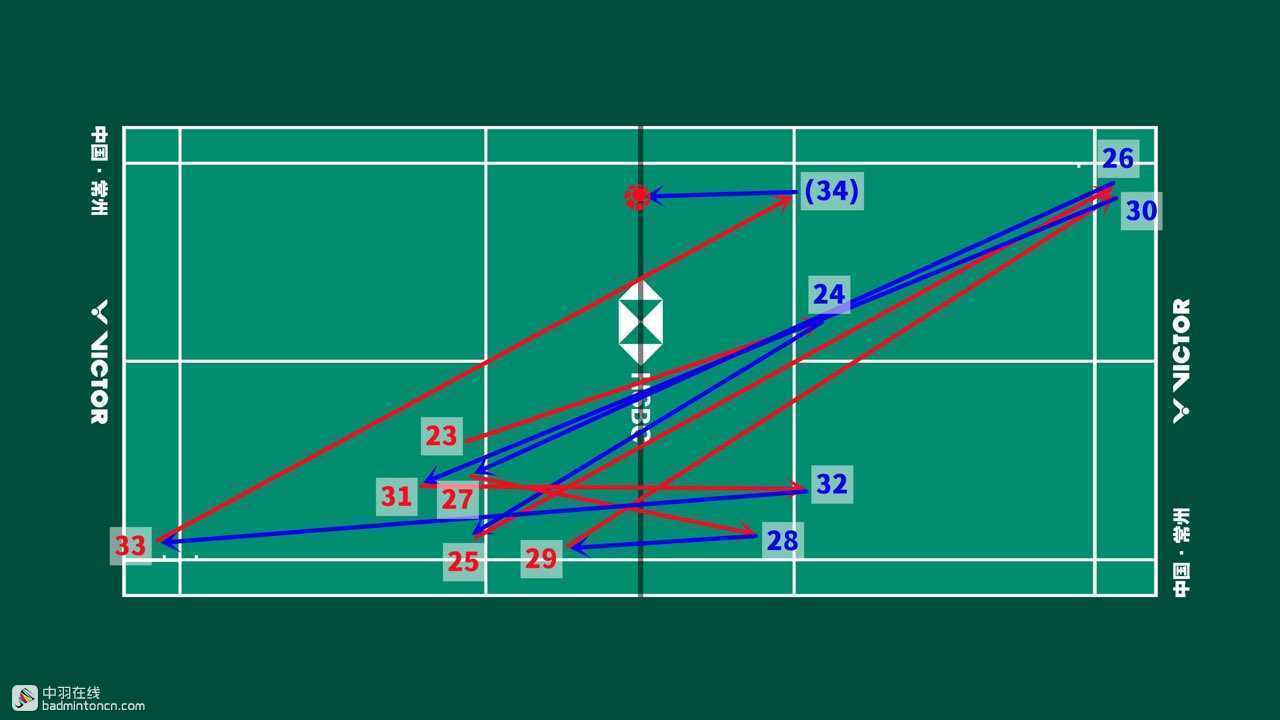 从发接发开始,两人的争夺区域就集中在中路,反复放远网寻找抓推机会,可见他们的战术思路都很明确,也比较相似,因此对于推挑的出手非常谨慎。