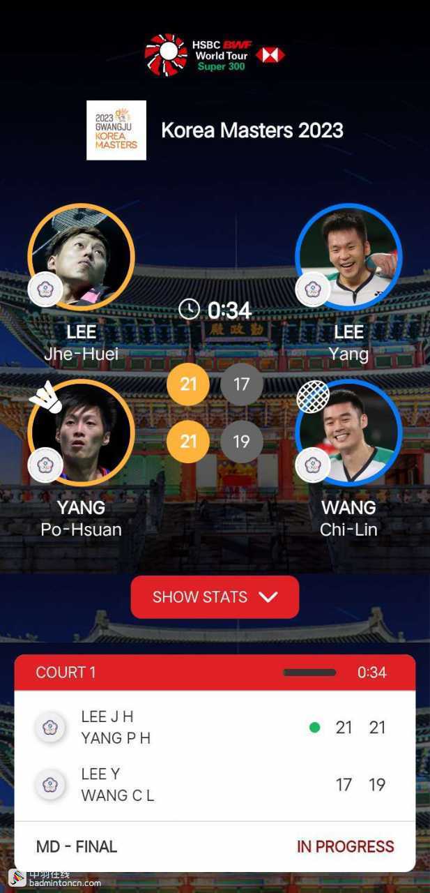 半决赛:21-19、21-18 徐承宰/姜珉赫