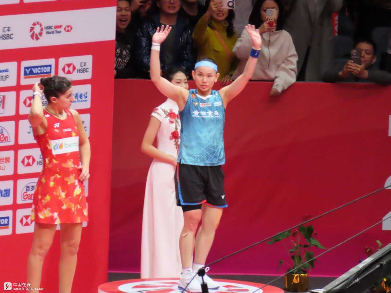 比赛结束后,戴资颖含泪向四面的观众们致谢,并将自己的球拍扔向观众席,作为对在自己落后时依然不遗余力为自己加油呐喊的观众们的答谢。对此,戴资颖表示,第二局的时候观众们给了自己很大的鼓励,不论自己落后了多少,观众们都一直在为自己加油,给予了自己很大的支持,让自己更有信心地坚持下去。